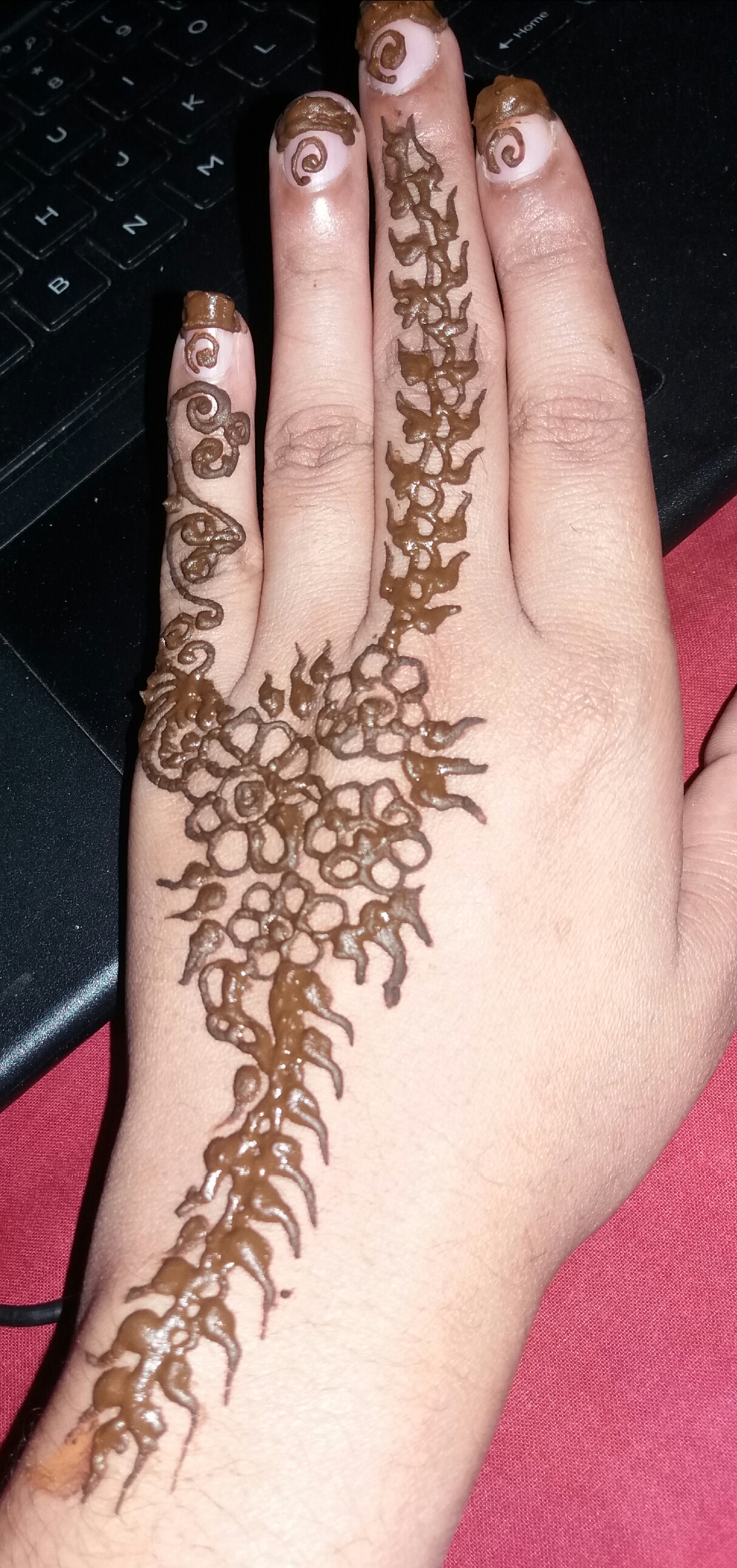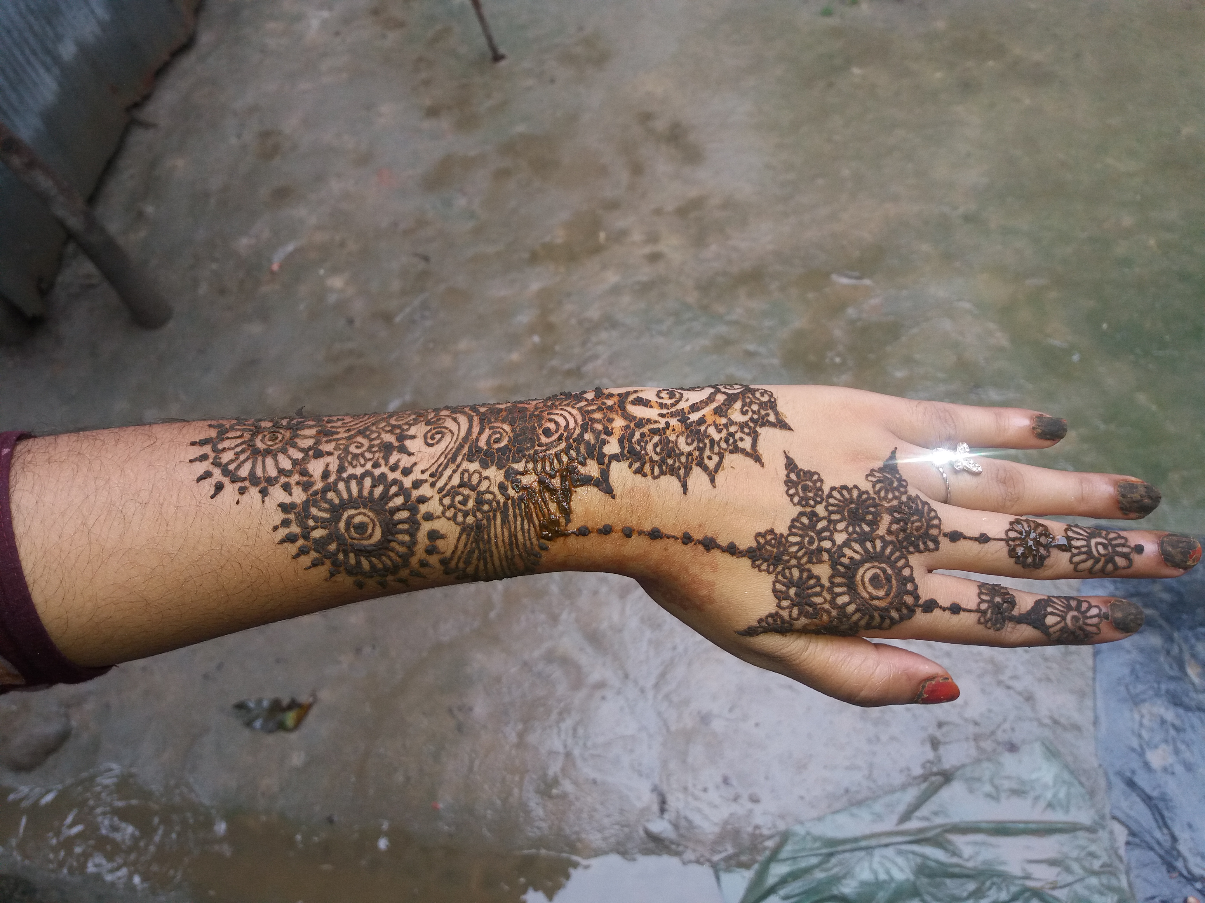 This is my wife who designed all the mehendi design. It looks so beautiful.