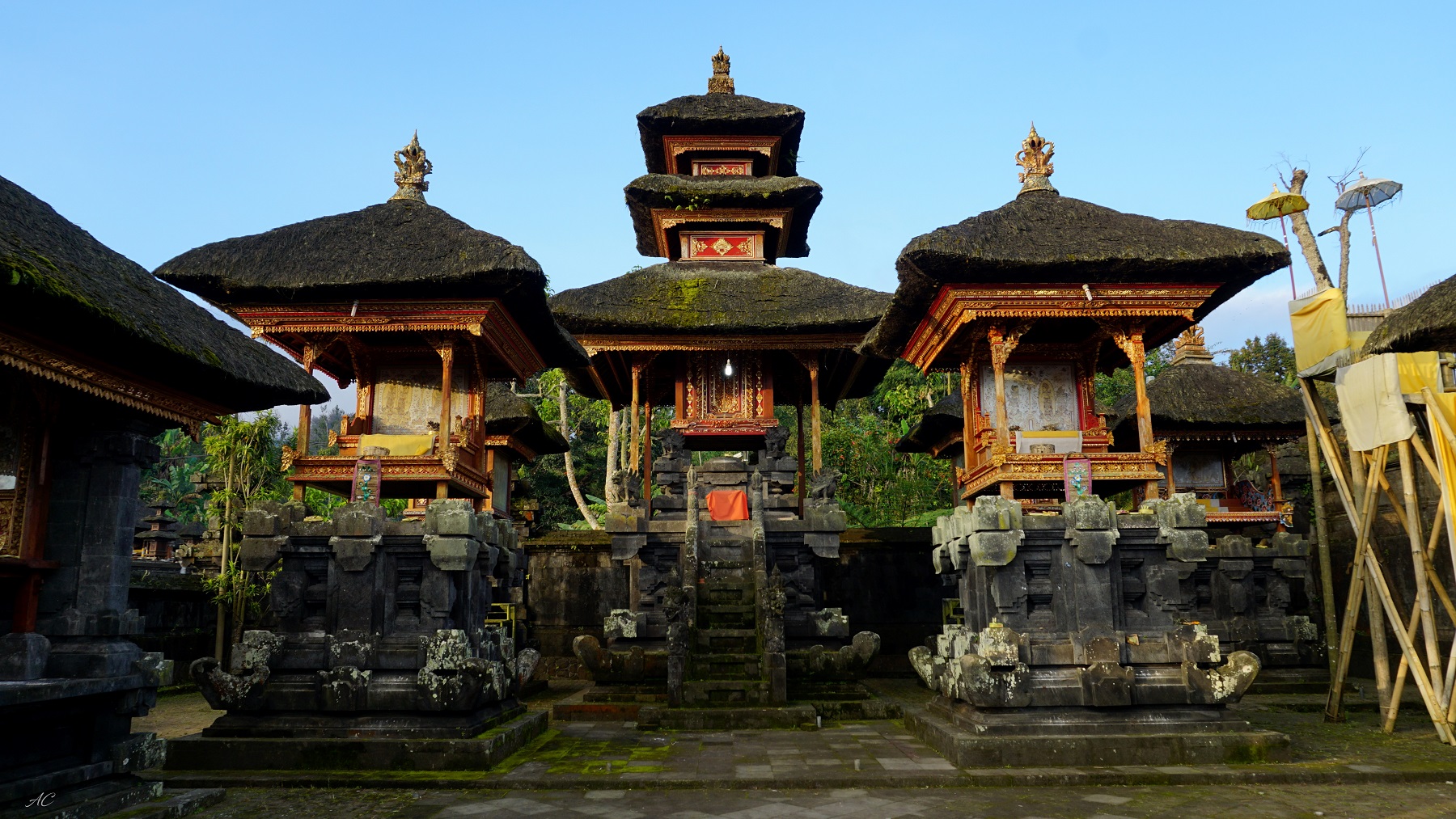 We happened to visit in the evening and as it is located 1,000m high on the slopes of Mt Agung, the light was wonderful and soon the mists drifted in over the entire complex...