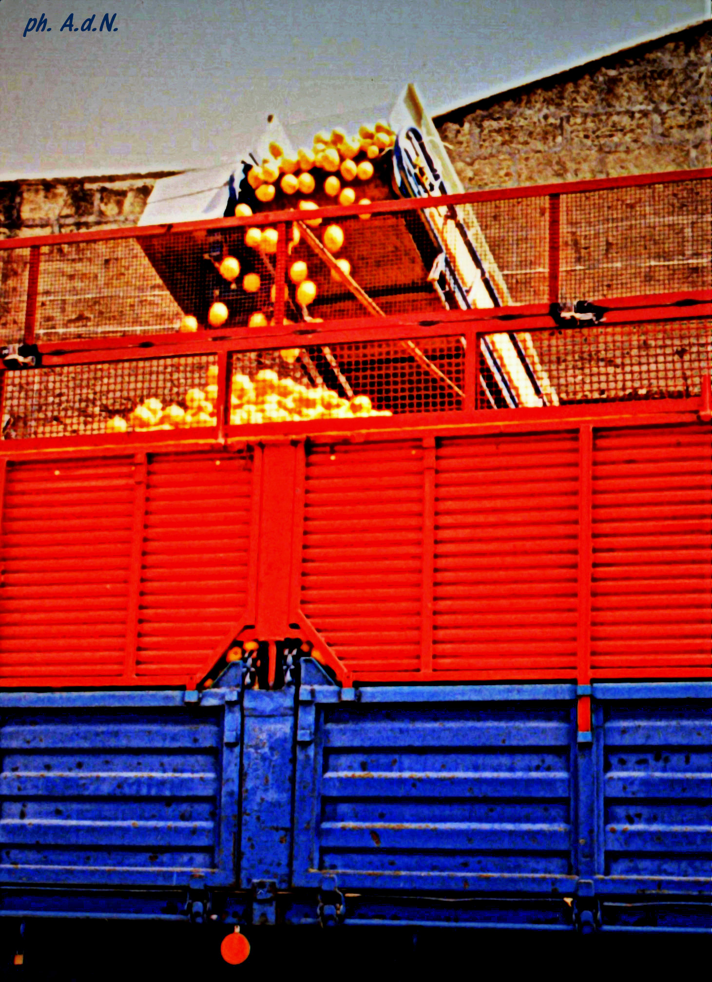 When still unripe, lemons are collected from the trees. Then with a conveyor belt they are loaded onto trucks and distributed in the markets. Every year, however, many fruits remain on the ground and rot unnecessarily.