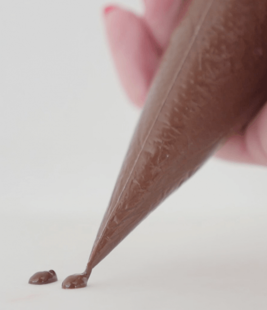 Melt the chocolate and pipe seeds onto non-stick baking paper.