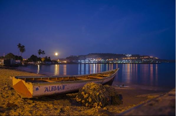 View of the moon before hiding, right next to El Morro Lecheria.