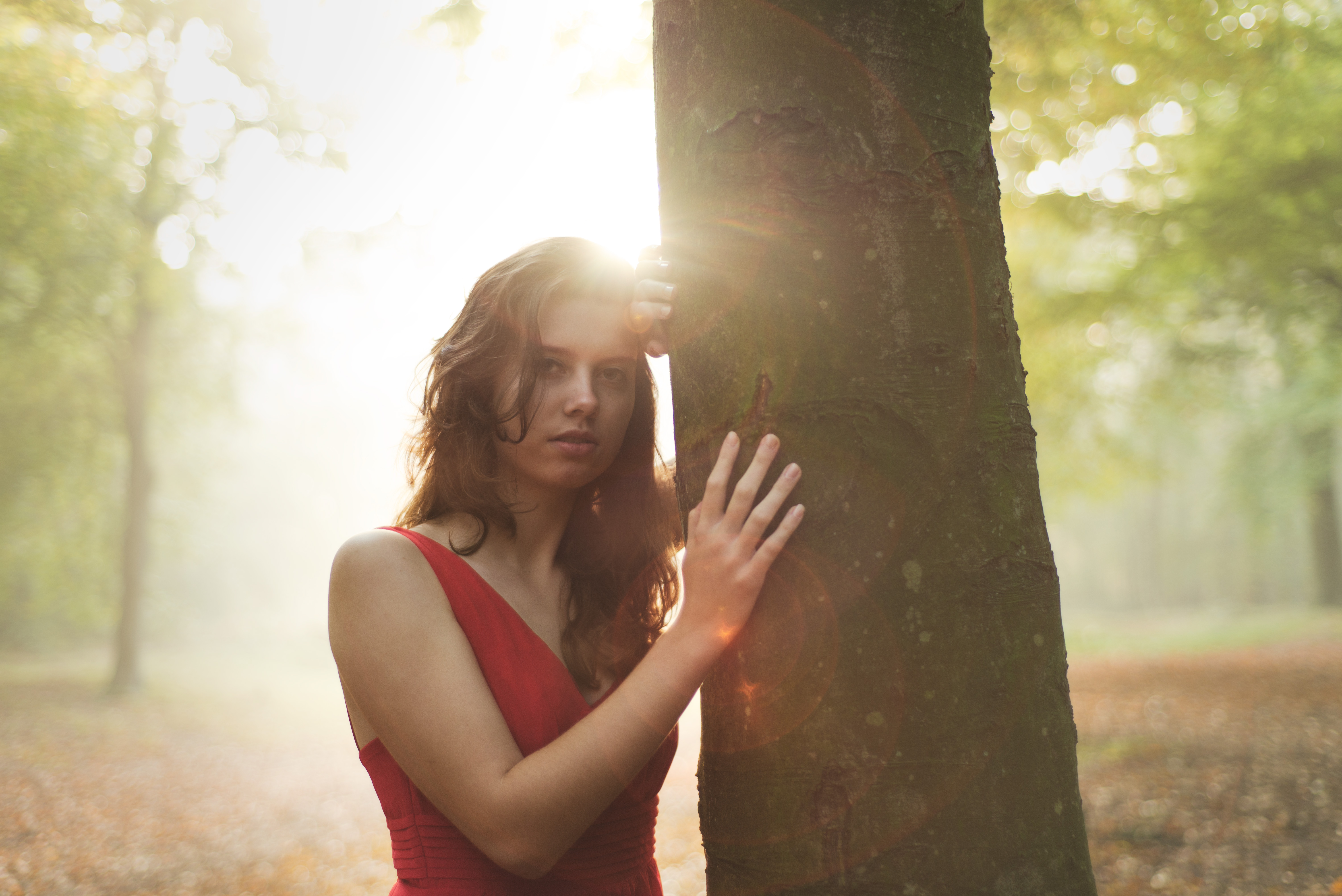 This picture was shot with the sun illuminating the model from behind. By having the sun just outside the frame, you can prevent the colors from being washed out. The light from behind helps to create this beautiful rim light, especially visible in the hair.