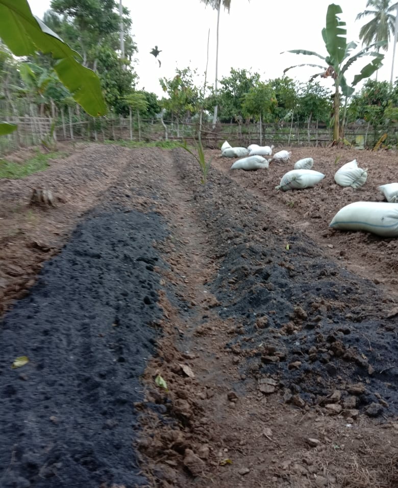 After the land is tilled the workers then collect the husk or ash from burning the rice husk taken from the rice factory.