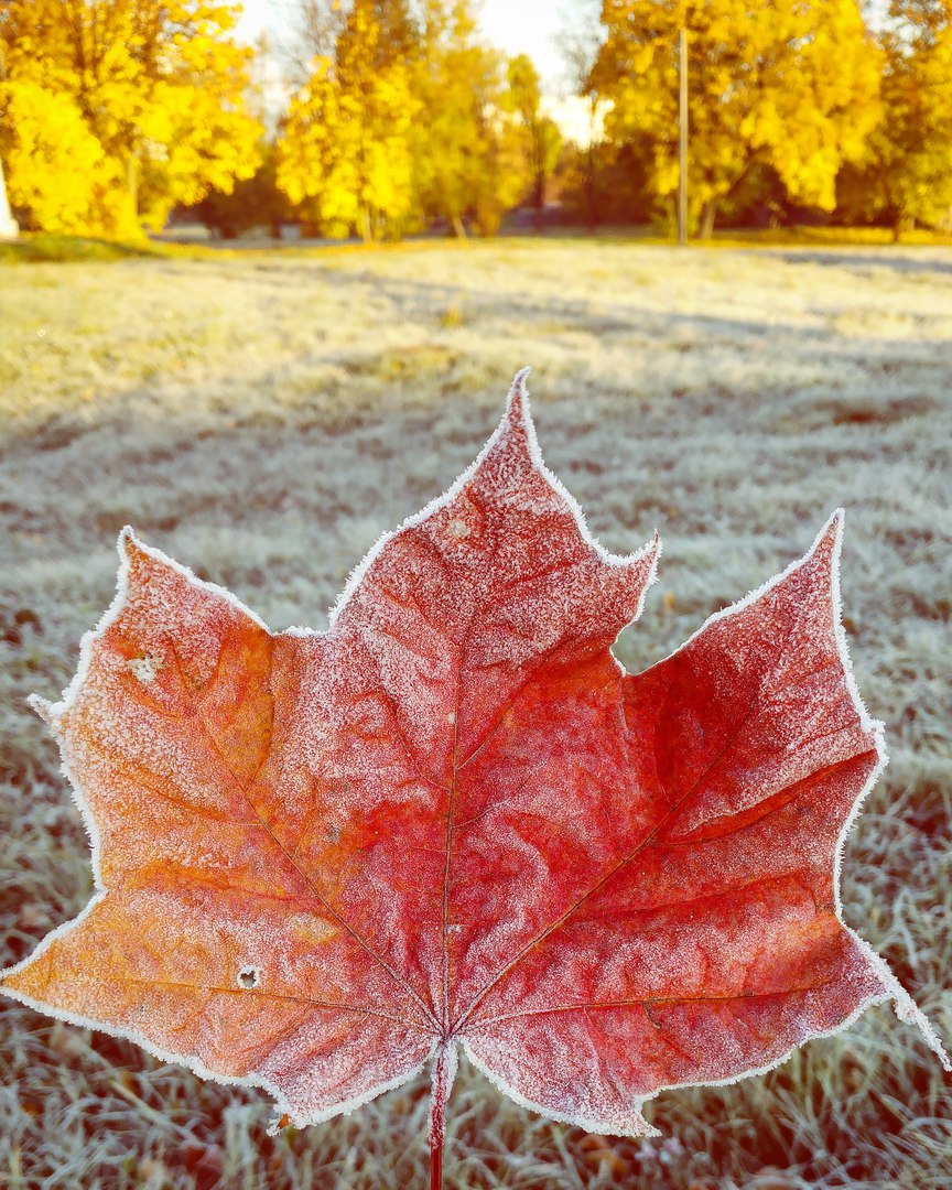 The temperature drops below every day of autumn. In the morning, grass and leaves are covered with snow. But as soon as the sun rises, the heat returns and becomes more cheerful.
