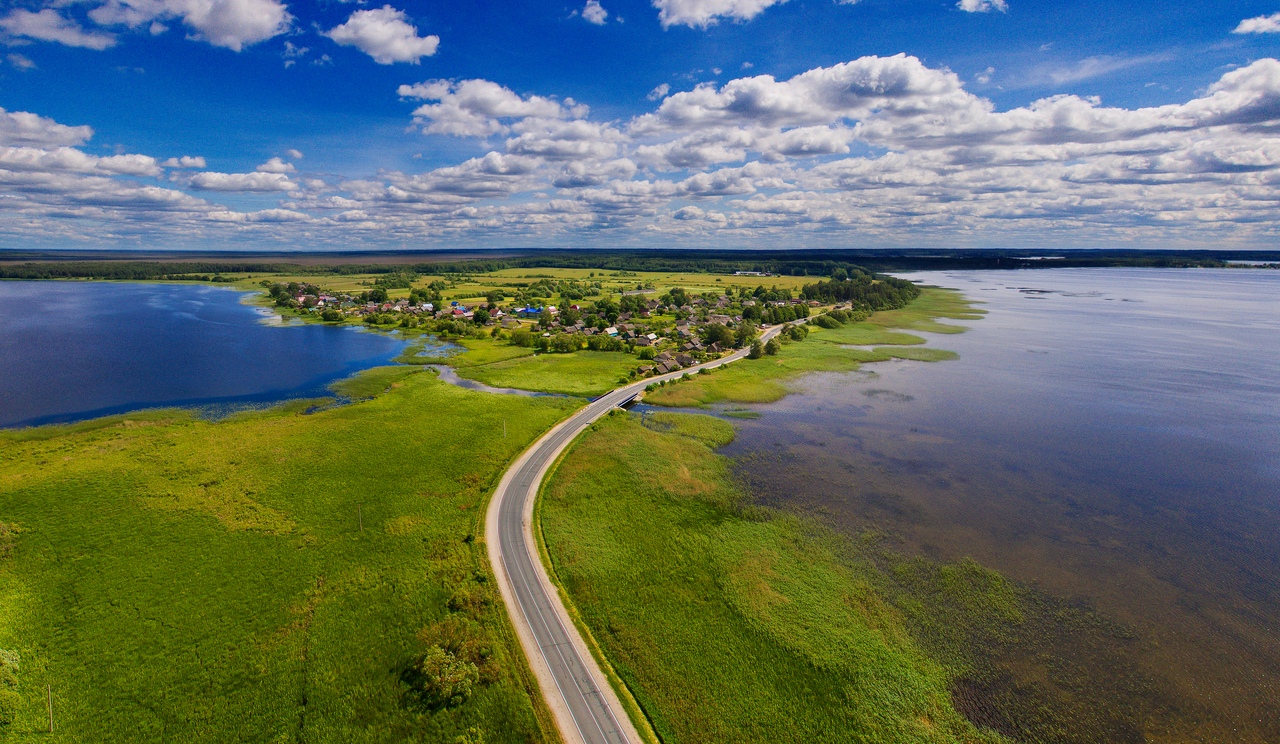 Vitebsk region in Belarus is famous for its beautiful lakes and rivers. In summer the landscape becomes greener with blue islets of reservoirs. The most beautiful view of nature opens from a bird's eye view. The quadrocopter can choose a better view of nature than planes. My friend sent me wonderful photos of Lake Zaronovo and Lake Miorskoe. I am happy to share with you the green landscapes of Belarus.