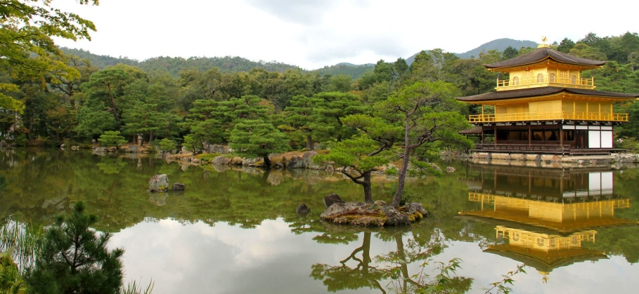 Unlike the ground floor, which has wooden structures and white plaster, the upper floors of the Kinkaku-ji Temple are completely covered with gold leaf.