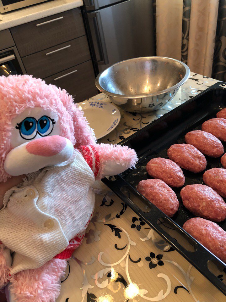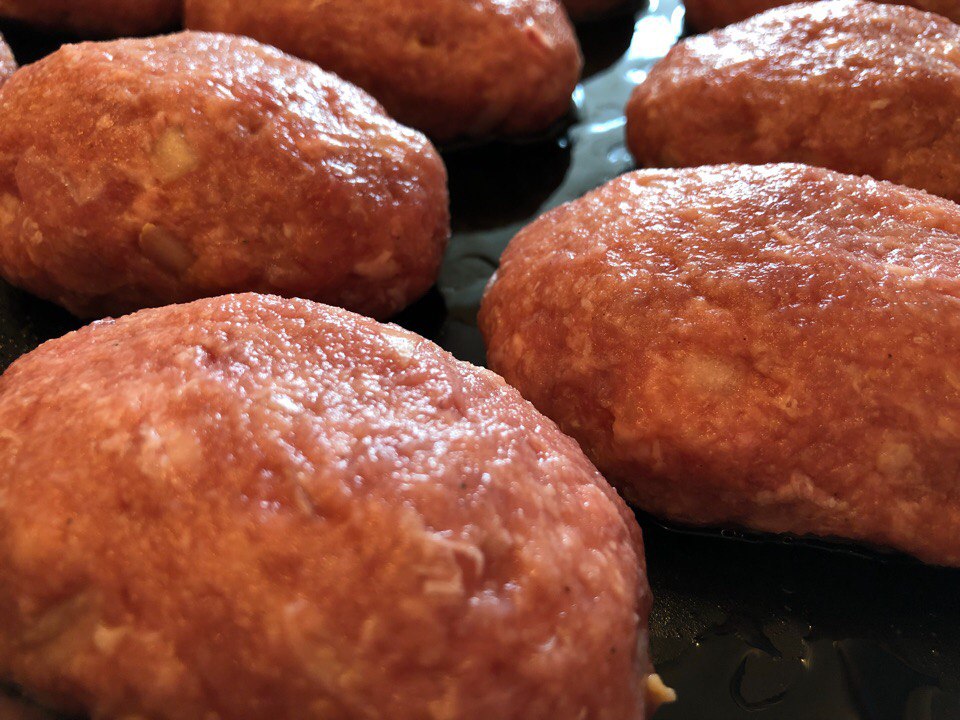 Cutlets. There is no special recipe, most likely everything is according to the standard. Eggs, onions, minced meat, salt / pepper, soaked breads. And a little milk! We make ourselves cutlets ourselves and put in the oven for 200 degrees to full readiness. By the way, it is better to make cutlets in the oven or for a couple - a guarantee of safety of your health.