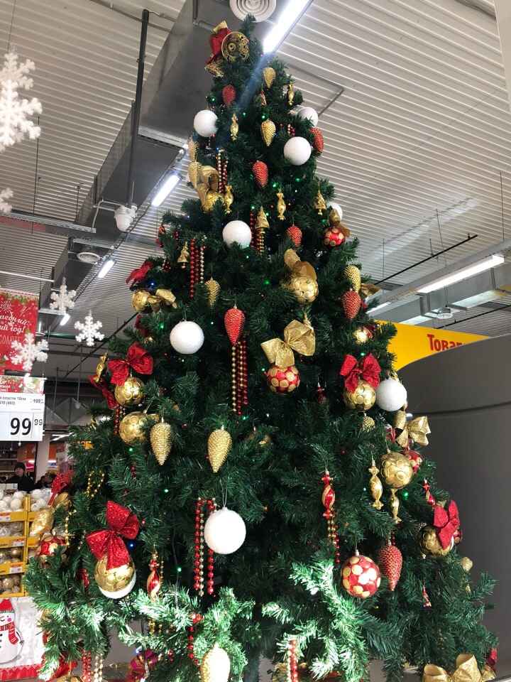 Here is such a cute Christmas tree in our supermarket. She is so big and beautiful.