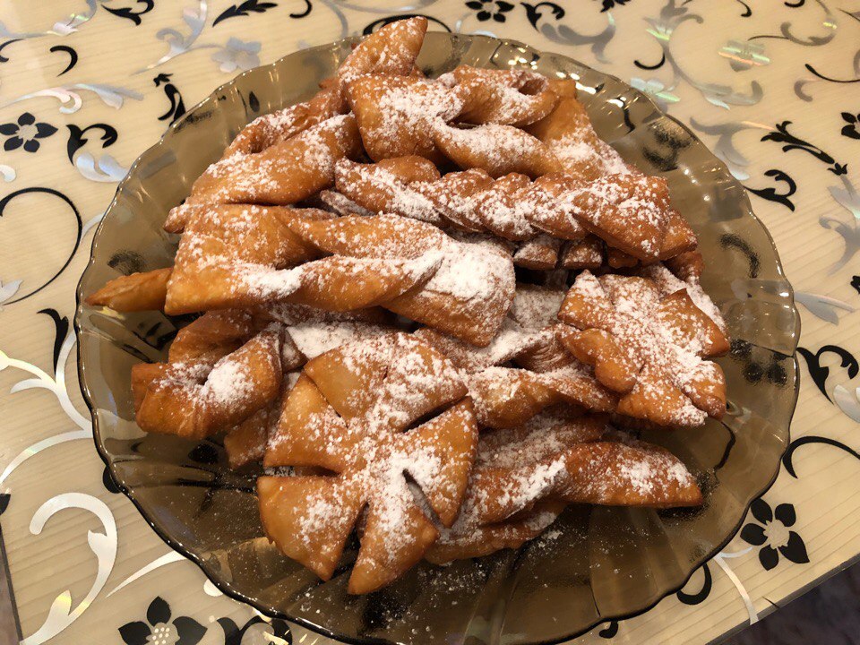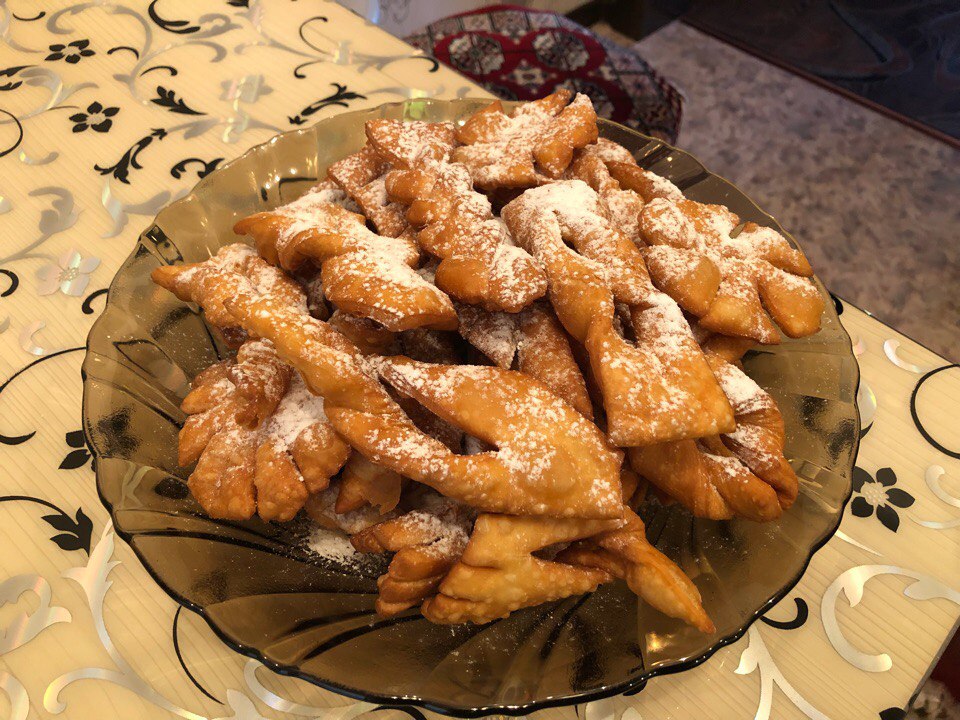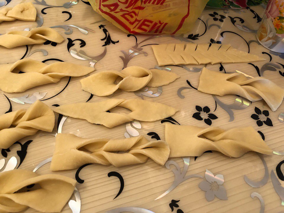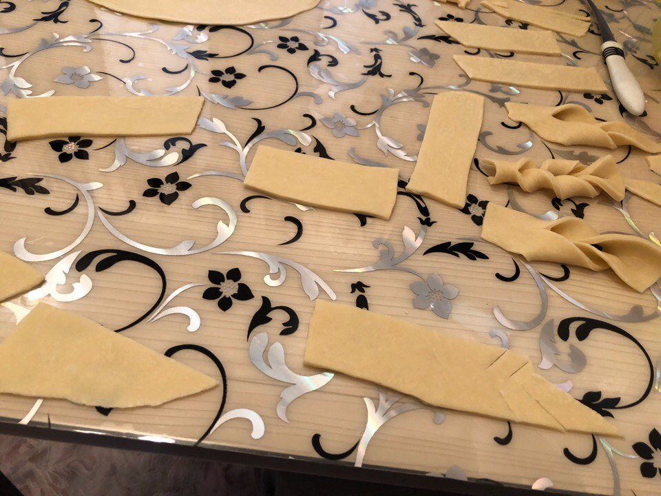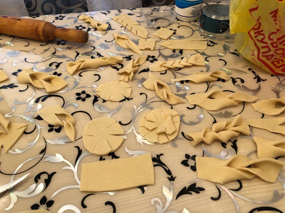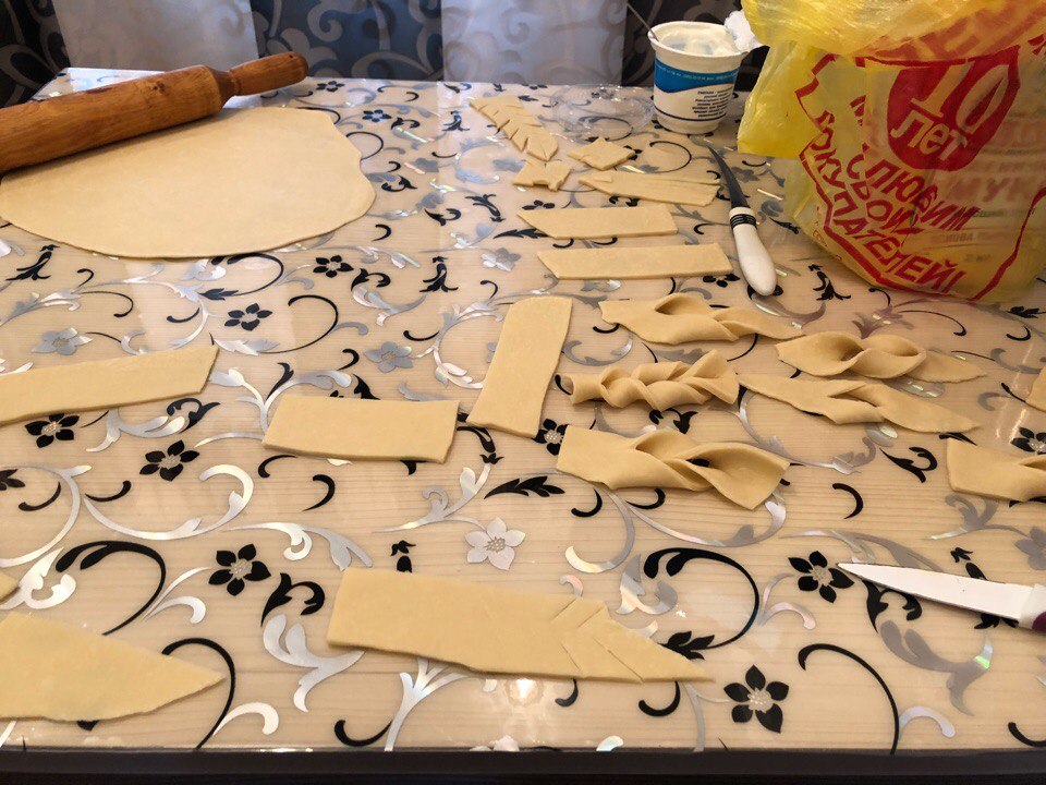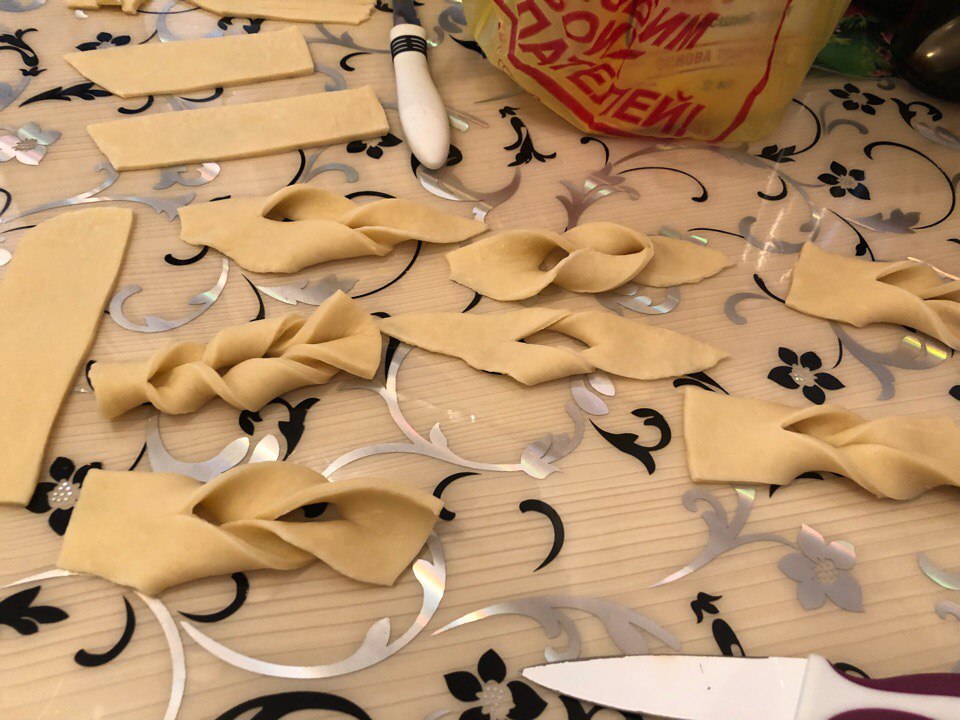 When all the funny interesting things are done, the monsters are stuck (😂), pour the sunflower oil into a saucepan and red-hot. There we throw our brushwood on several pieces at a distance from each other. When fried - lay out on a napkin to glass oil. Then on a plate and sprinkle with powdered sugar ✨
