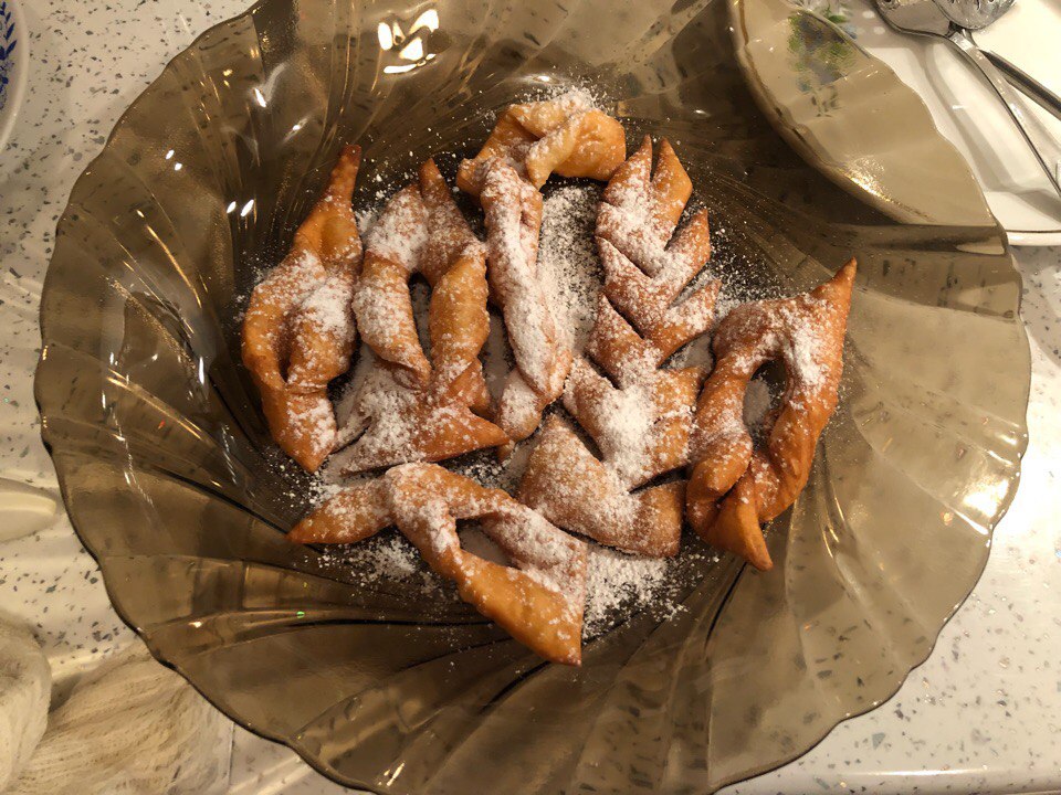 Когда все забавные интересности сделаны, монстры налеплены (😂), наливаем в кастрюлю подсолнечное масло и раскаливаем. Туда бросаем наш хворост по несколько штучек на расстоянии друг от друга. Когда поджарится - выкладываем на салфетку, чтобы стекло масло. Потом на тарелочку и посыпаем сахарной пудрой ✨
