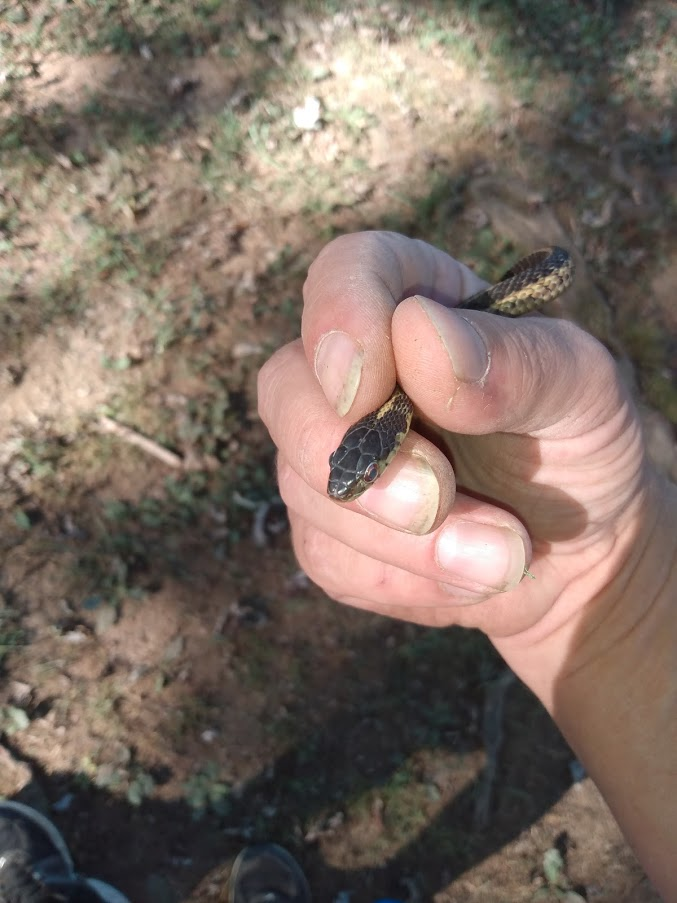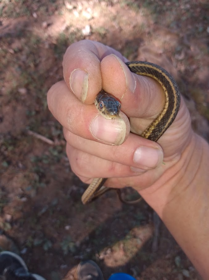 It's just a harmless Garter Snake, no need to freak out. Unless, you just plain don't like snakes. It took a long time to finally get a full tongue whip snapshot while holding a phone. Not my best photography, but am pleased that I was able to get the taster as it lashed out! Here's a few more of the little fella.