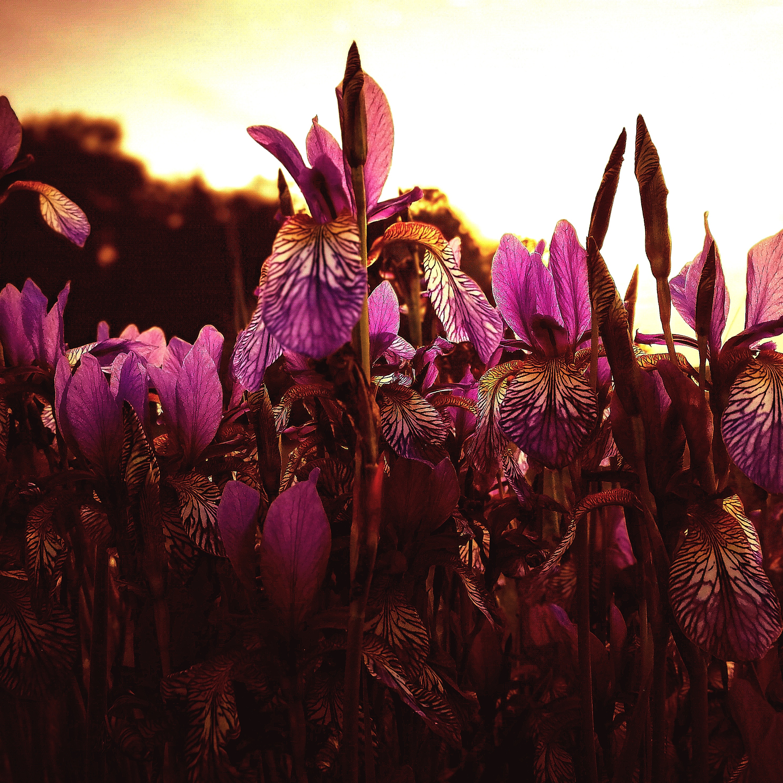 Flowers in a field in Southern Germany shining with the setting sun