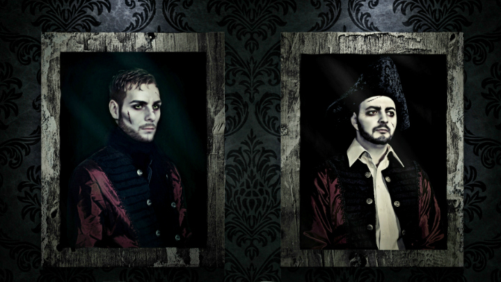 Eerie costumes and spooky makeup were used to create the portrait images. Once the images were edited, they were layered with a variety of lighting elements, colors, and other textural imagery to give the invite this unique look.