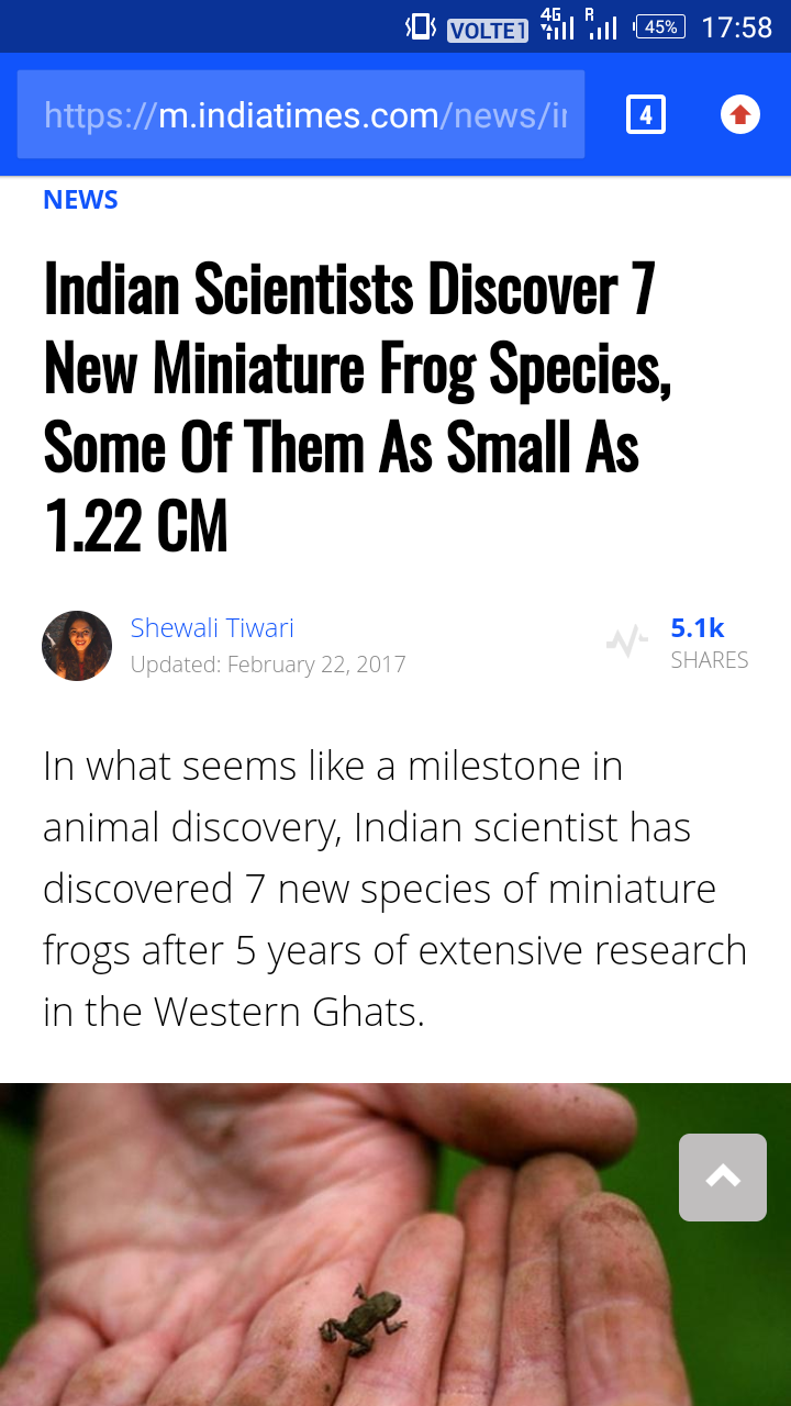 I can not belive that i read a news about frog that 7 new species frog foun some of them is 1.22 cm.