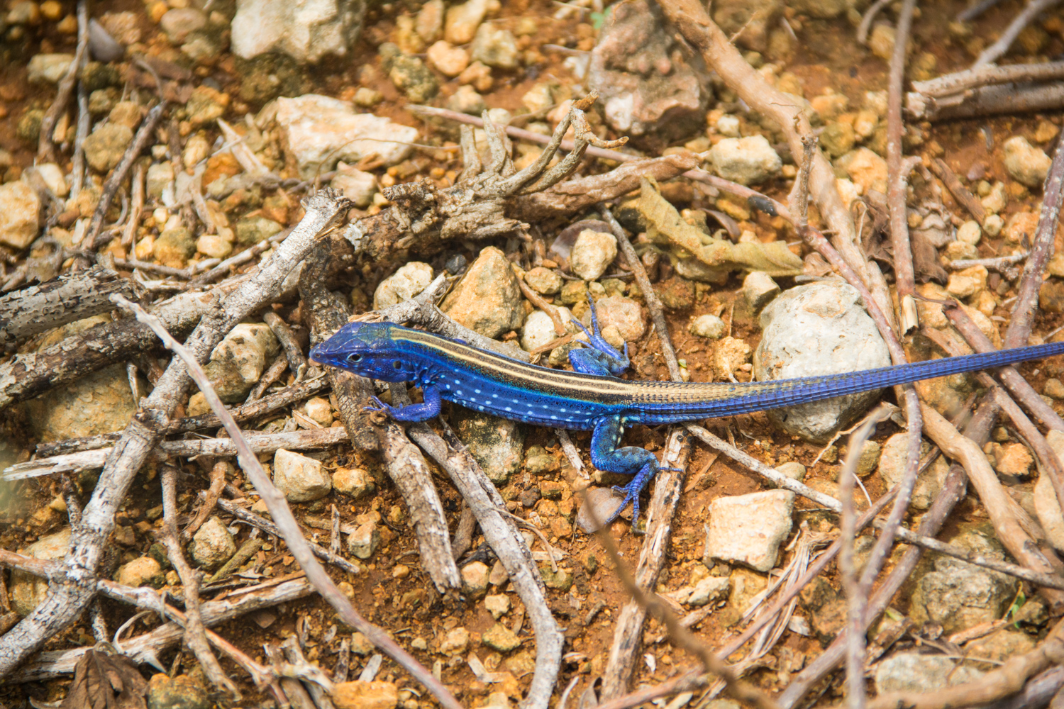 Hello friends! Today I share a picture that I took last year in the Montecano Biological Reserve, in the Paraguaná Peninsula, Venezuela, arid place and predominantly xerophilous vegetation, where I could see and photograph the famous Blue Lizard or "Bisure Azul" as well as the locals know. endemic species of this place, with bright colors and impressive beauty.