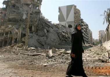 Many simpler attempts were also made by just giving false or misleading captions to otherwise real photographs that were taken at different time or place and used during the Lebanon war period. Consider the images below. First image was captioned “Journalists are shown by a Hizbollah guerrilla group the damage caused by Israeli attacks on a Hizbollah stronghold in southern Beirut, July 24 2006. (Adnan Hajj/Reuters).” But look at the next photo captioned as “A Lebanese woman looks at the sky as she walks past a building flattened during an overnight Israeli air raid on Beirut’s suburbs August 5, 2006. (Adnan Hajj/Reuters).” But a cursory glance shows that it’s the exact same destroyed buildings in both photos. If they were already destroyed on July 24, they couldn’t have been destroyed on August 5, especially since the damage is identical in both pictures. It’s quite obvious that photos of the same scene were re-released to make it appear as if Israeli bombing raids were continuously hitting Beirut, when in fact Reuters was just recycling the same damage over and over. Well it’s ironic how one image disproves another image.