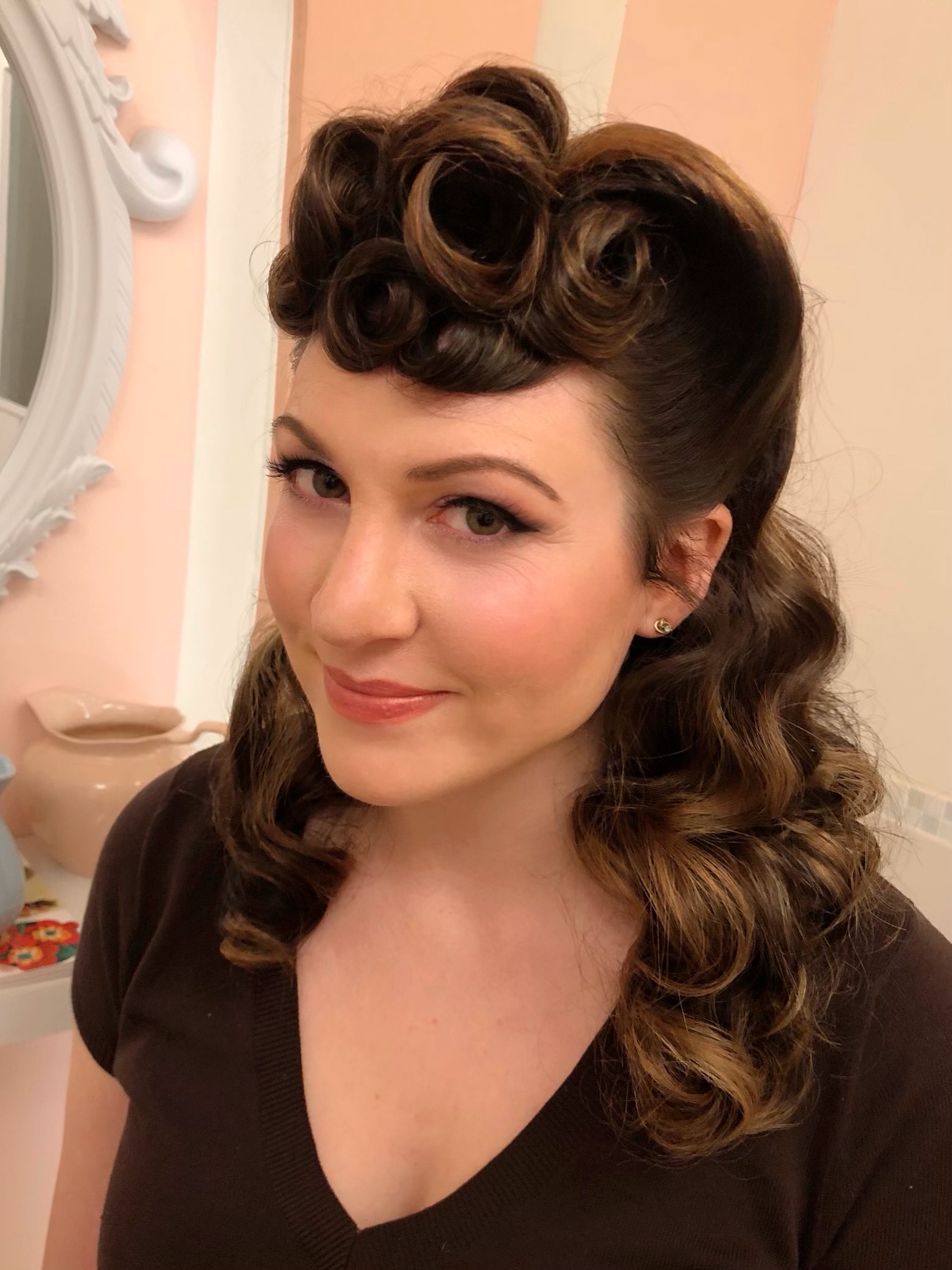 We opted for a half up half down do. I'm so glad we did because the curls at the back I created were just vintage perfection!