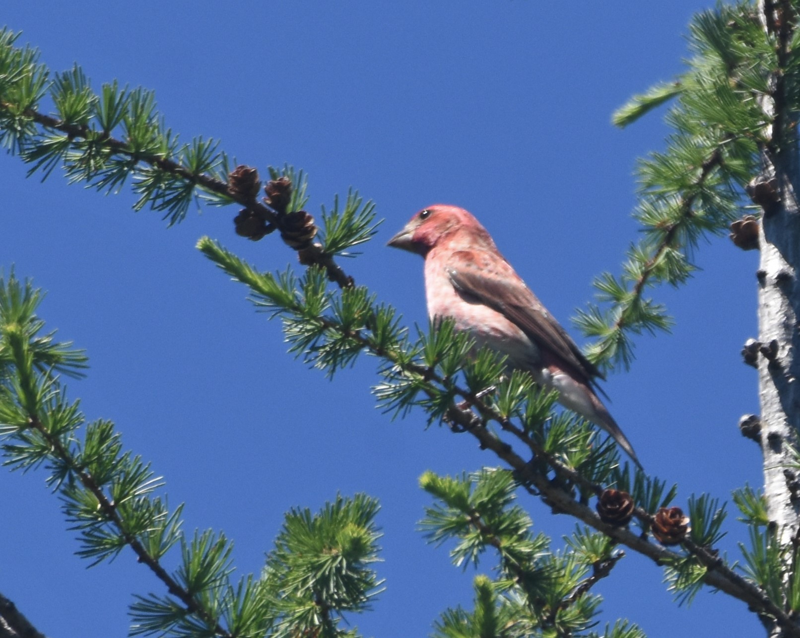 The Purple Finches Haemorhous purpureus here in the east are so much brighter and paler in the white areas than I'm used to in Washington that I had trouble with the ID.