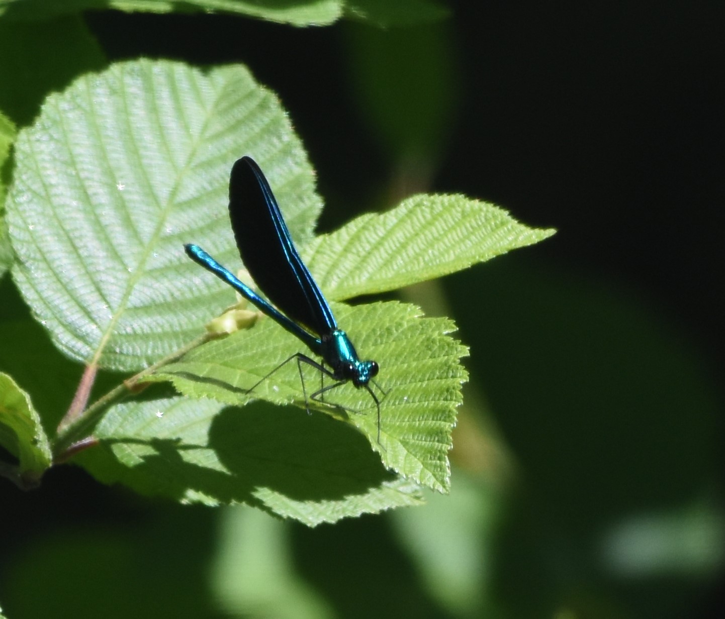 Let's finish with a really cool dragonfly. I believe this is a n Ebony Jewelwing Calopteryx maculata