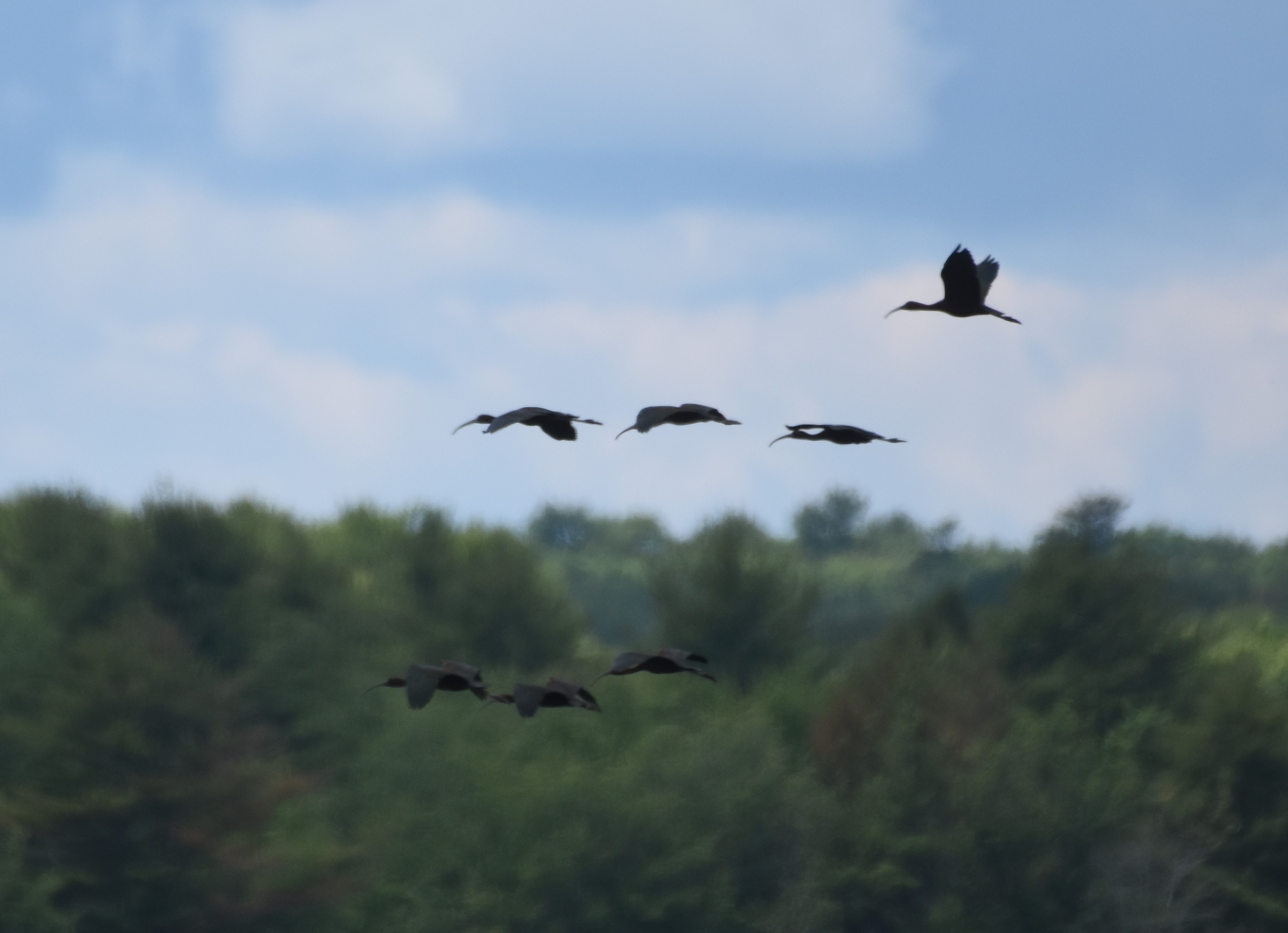 There were a lot of Glossy Ibis flying around today.