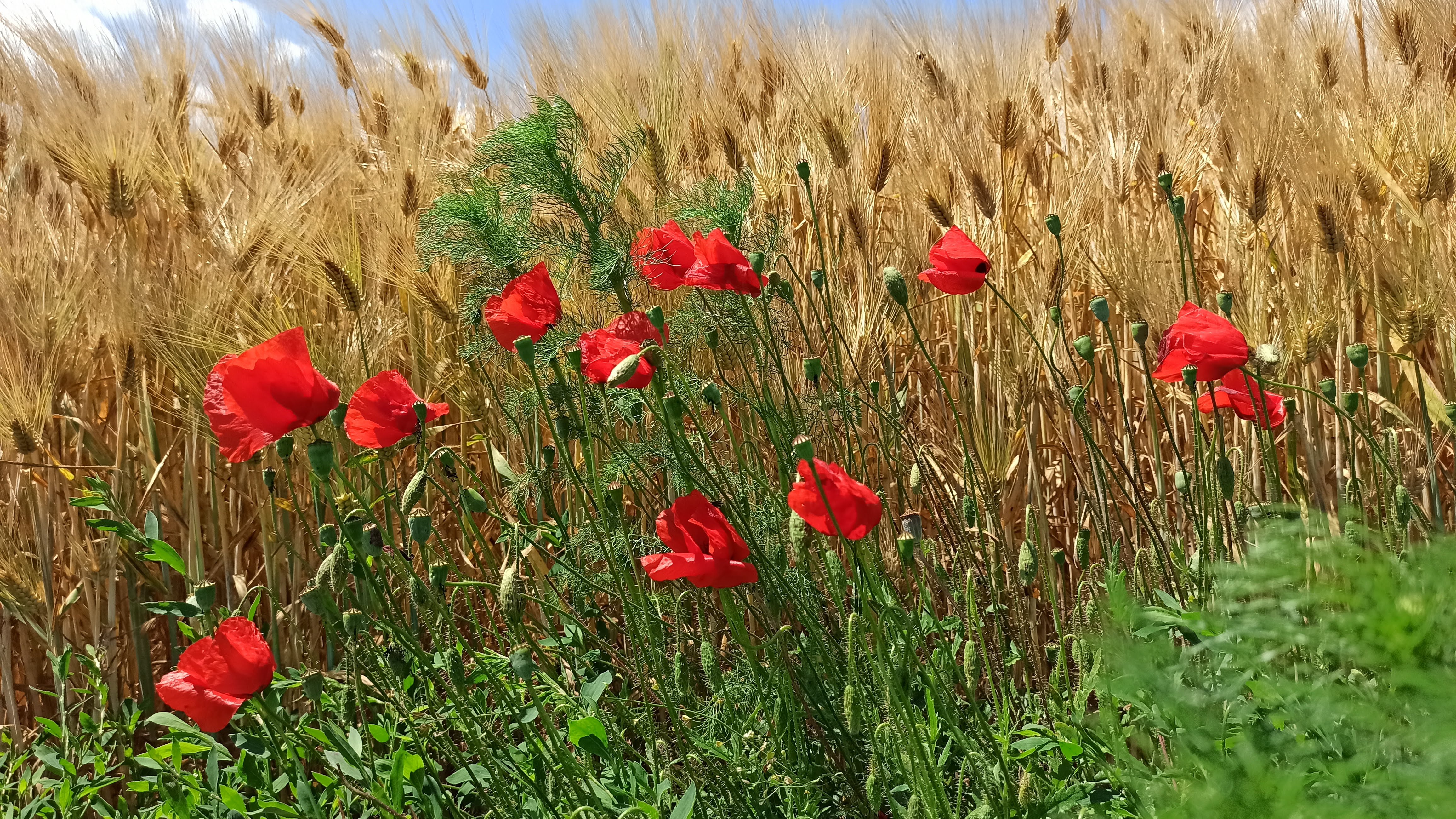 Ever since I was a child, I remember images that were deeply etched in my mind, scenes of large yellow wheat fields interspersed with many Red poppies swaying in the gentle summer breeze. You probably have a similar memory!