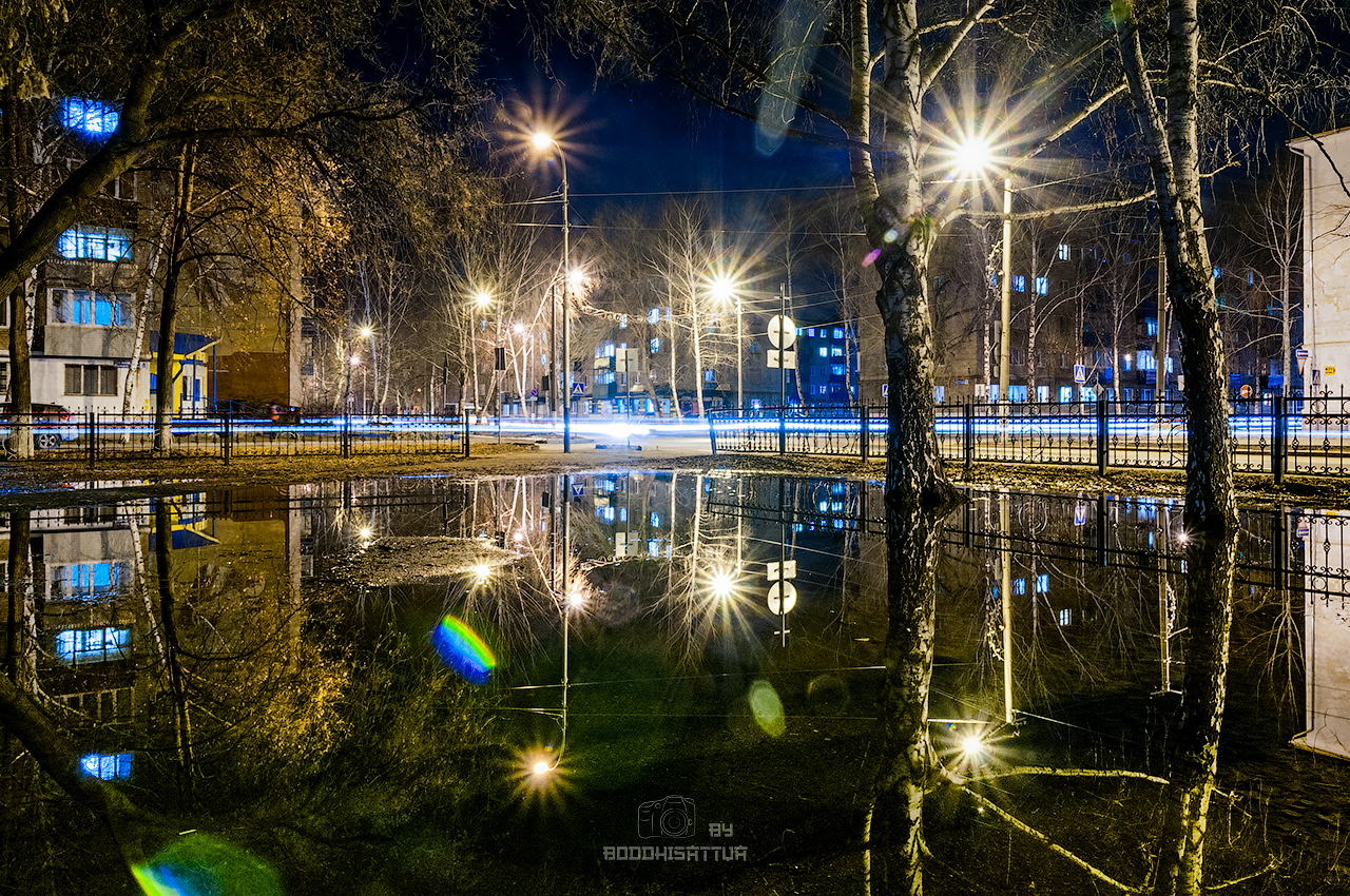 Accordingly, there was not a lot of snow this year, and the puddles were correspondingly too. However, there is not enough time for a photo-tour either. But I recently noticed one huge puddle and arrived to it under cover of night as soon as this opportunity appeared ...