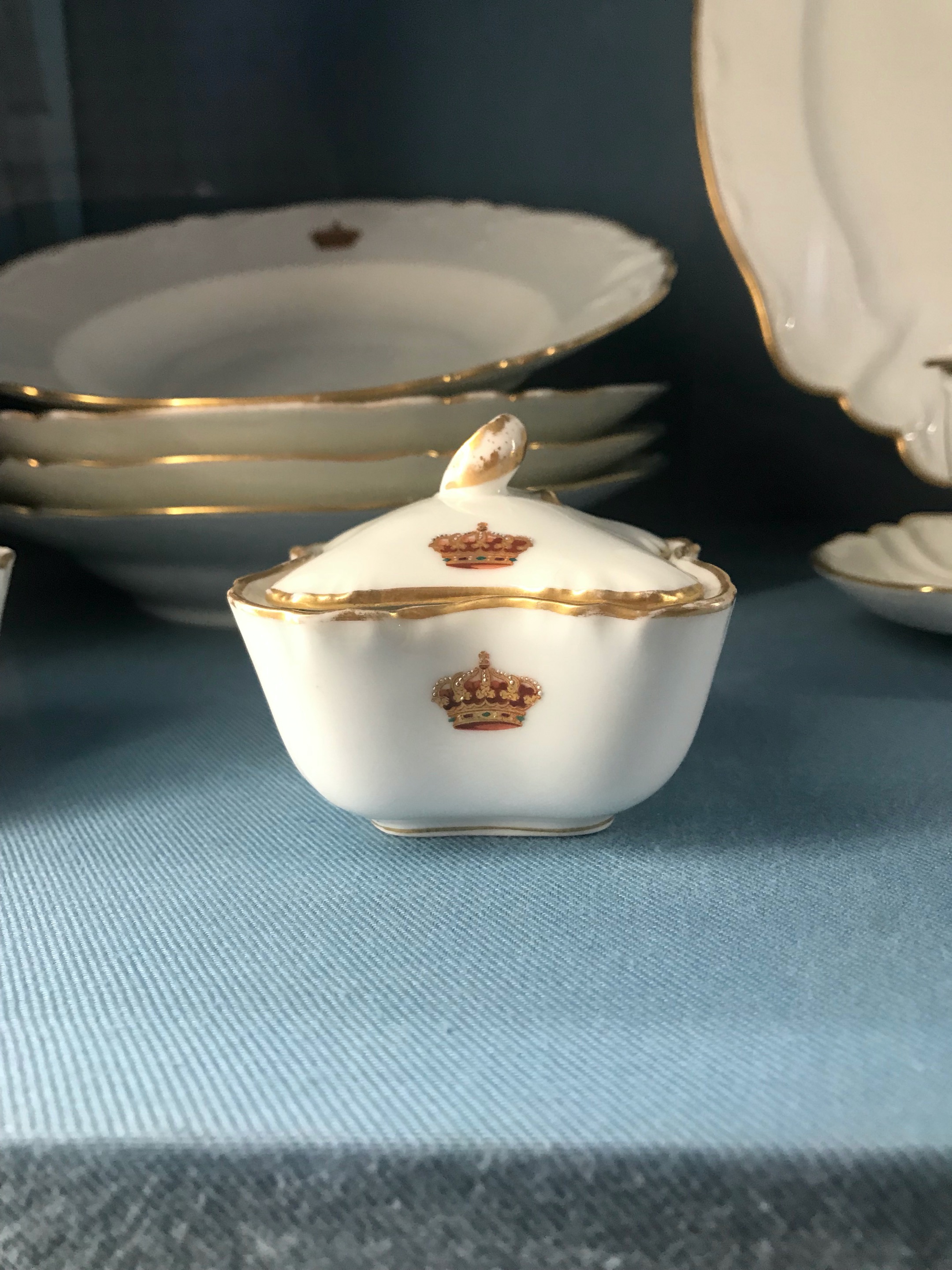 The Royal china, emblazoned with the crest of the Portuguese Royal Family.
