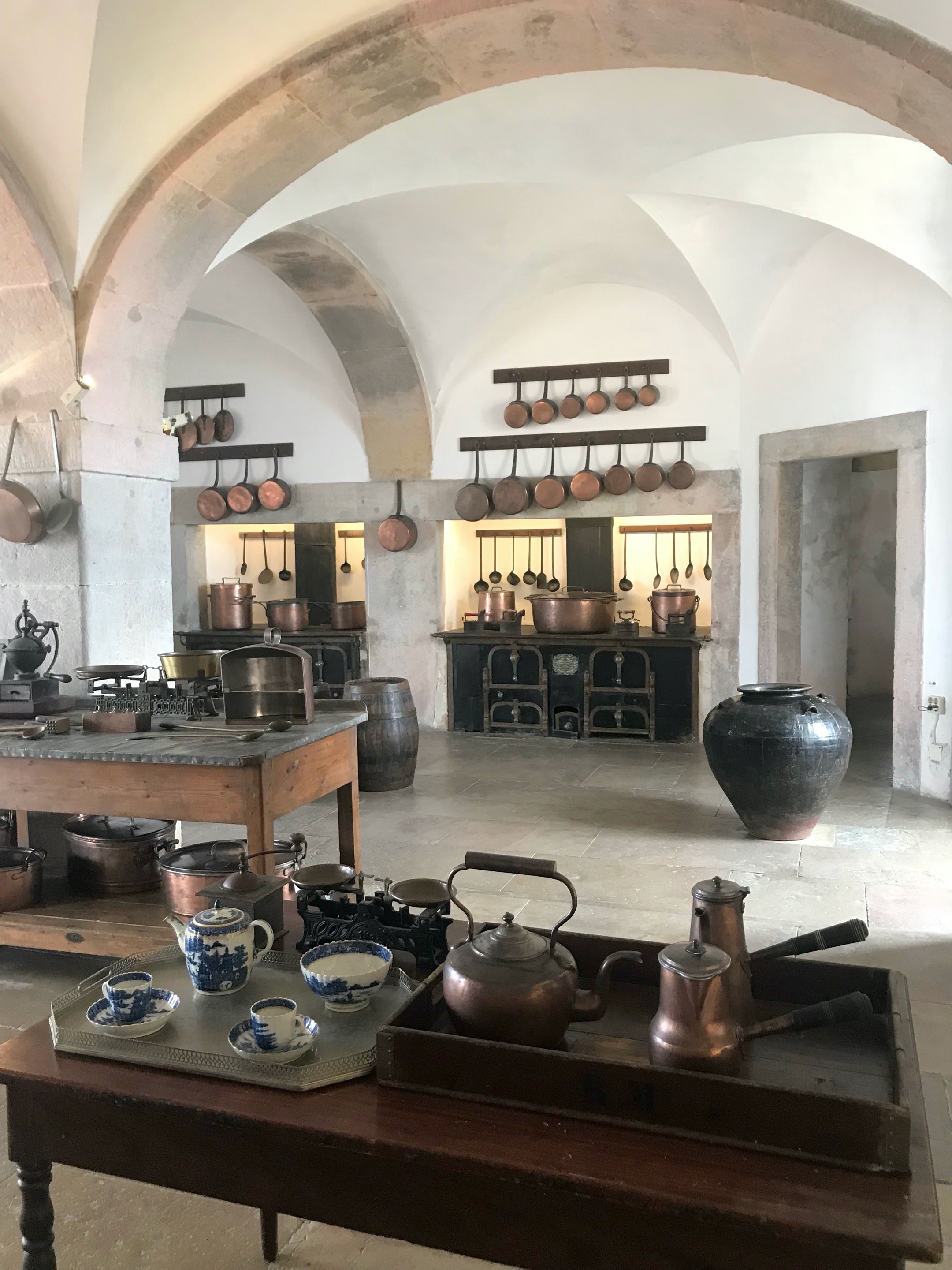 While plain in palatial standards, the immense kitchen was built for function over form. Featuring large ovens and cast iron stoves, spaced with wooden tables for the preparation of meals for the Royal family and their guests, this area was, in of itself, impressive. A multi arched ceiling of inlaid stone added a dramatic touch to this working space. Stone floors added a utilitarian air, although certainly beautiful in their functionality.