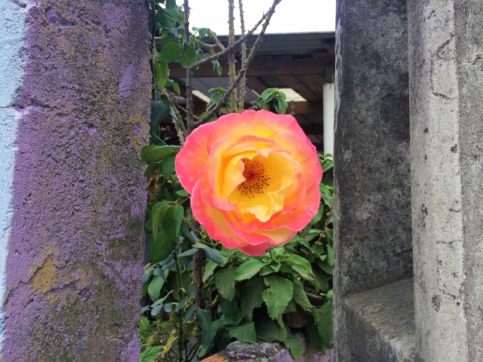 ...with unusual color growing between two concrete poles