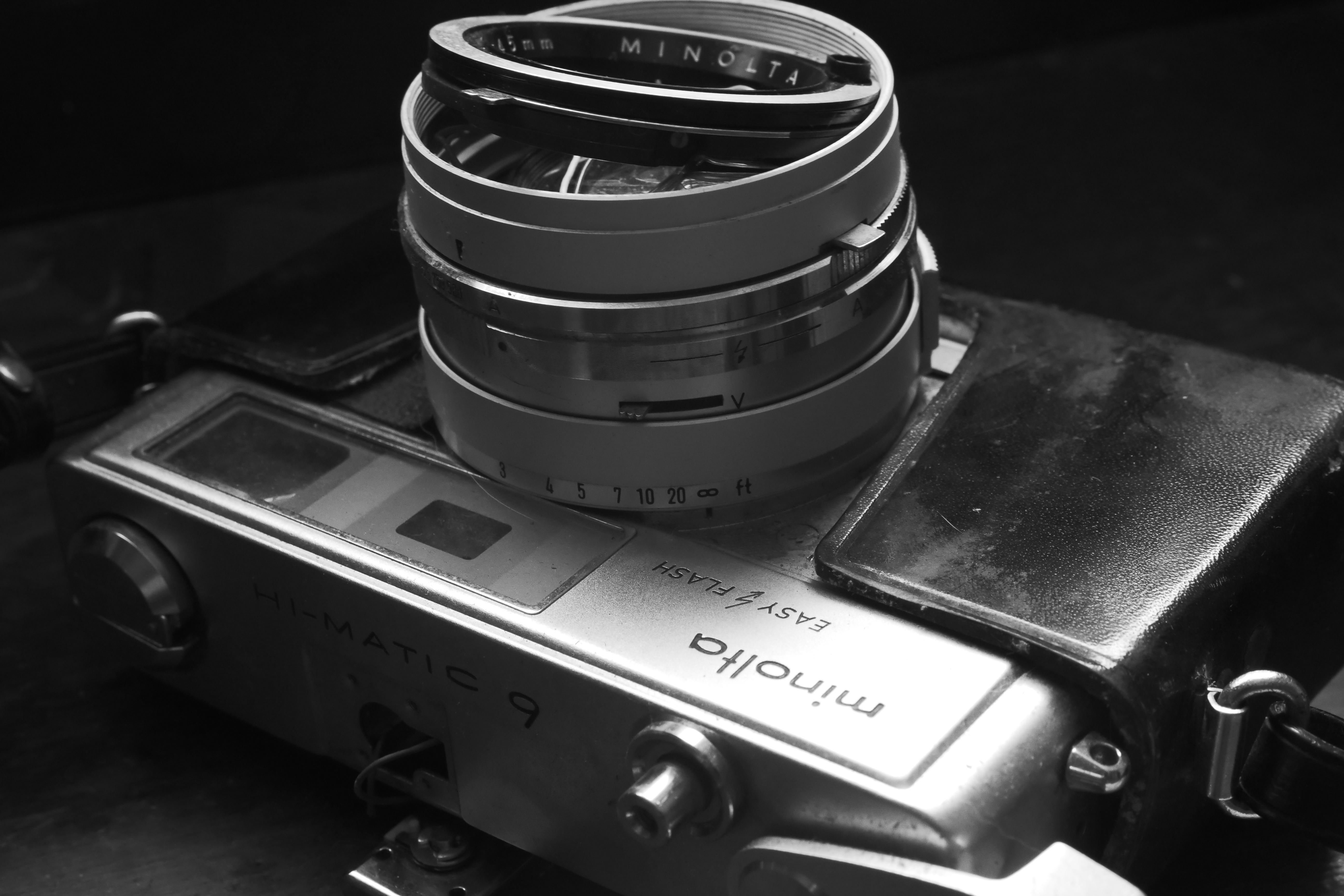and another reference-- here's what's left of the first camera i tried to fix. this one, a film camera, belonged to my grandfather, and was allegedly knocked off a table and never fired again. i tried my hardest to un-stick the shutter, but it just never happened. and since i had to go in thru the lens, it was a pain in the ass to get back together! i ended up buying another of the exact same model for extremely cheap, but stopped using it when i got some film stuck in the canister inside it. today i finally broke down and fixed it!