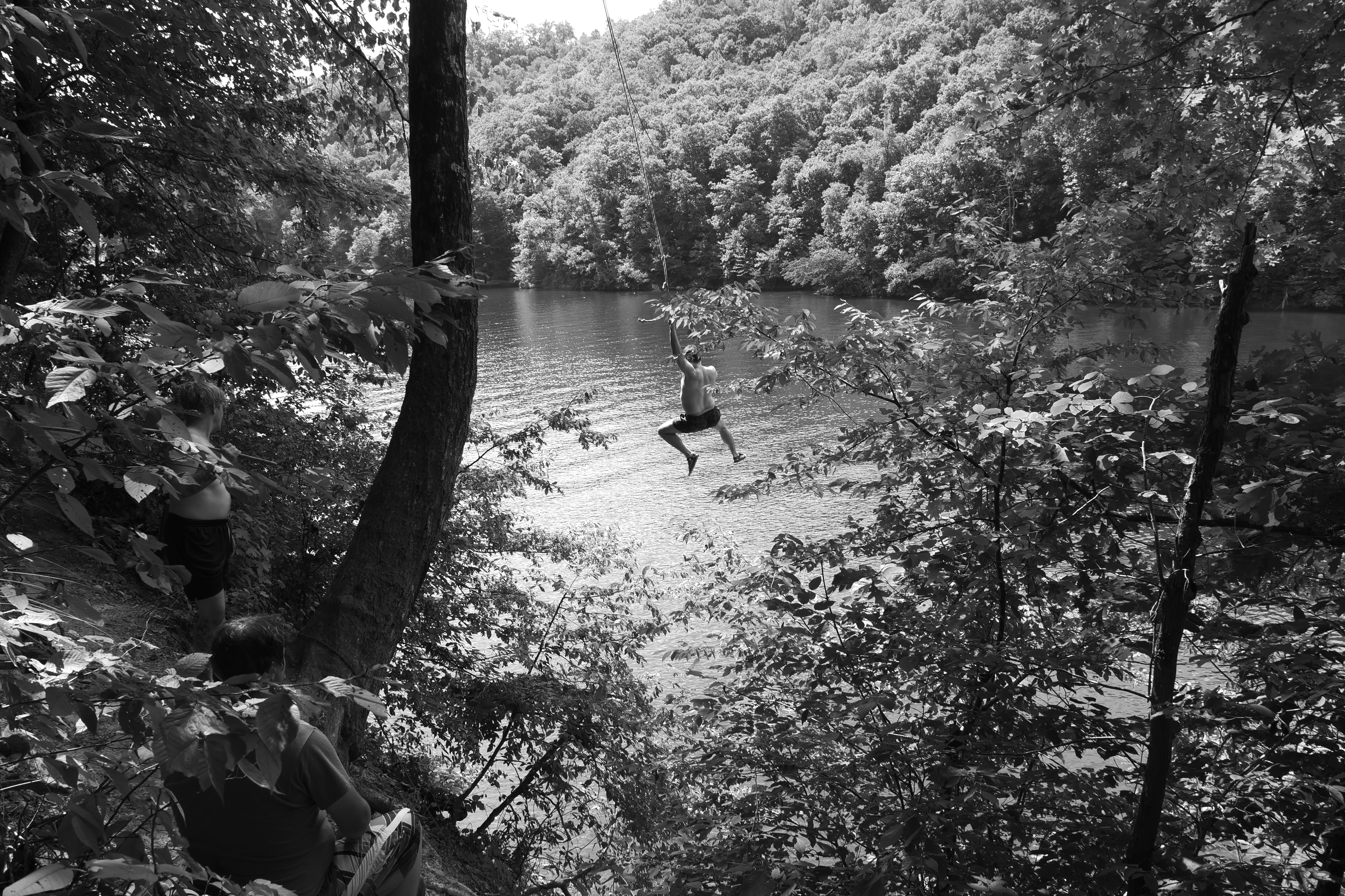 joe flies off a rope swing into Carr Creek Lake. it ain't summer without a rope swing!