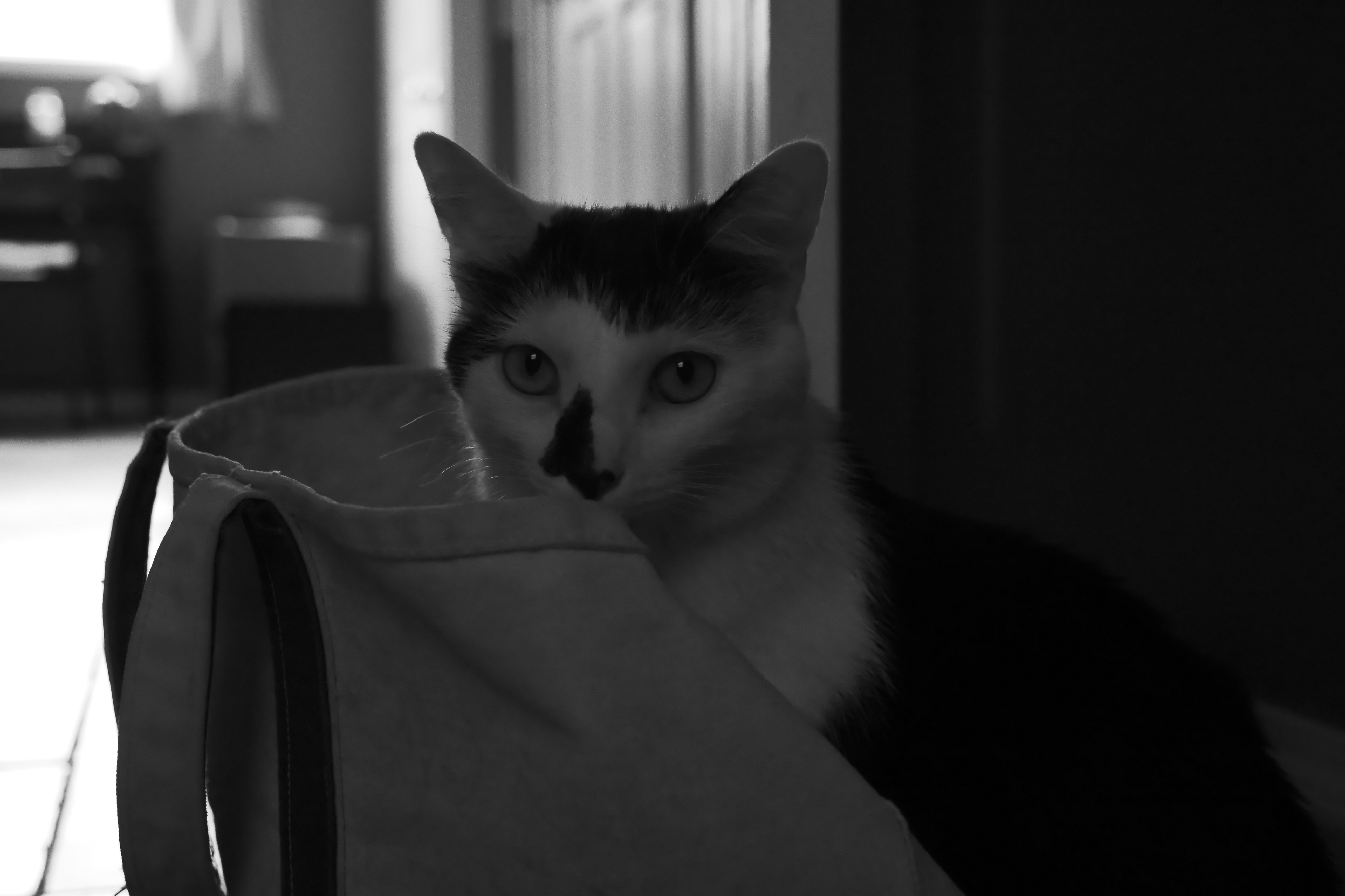 by this point in the week I was feelin pretty tired, so i laid down pretty early, and my cat decided to join me. she really loves sitting in this bag