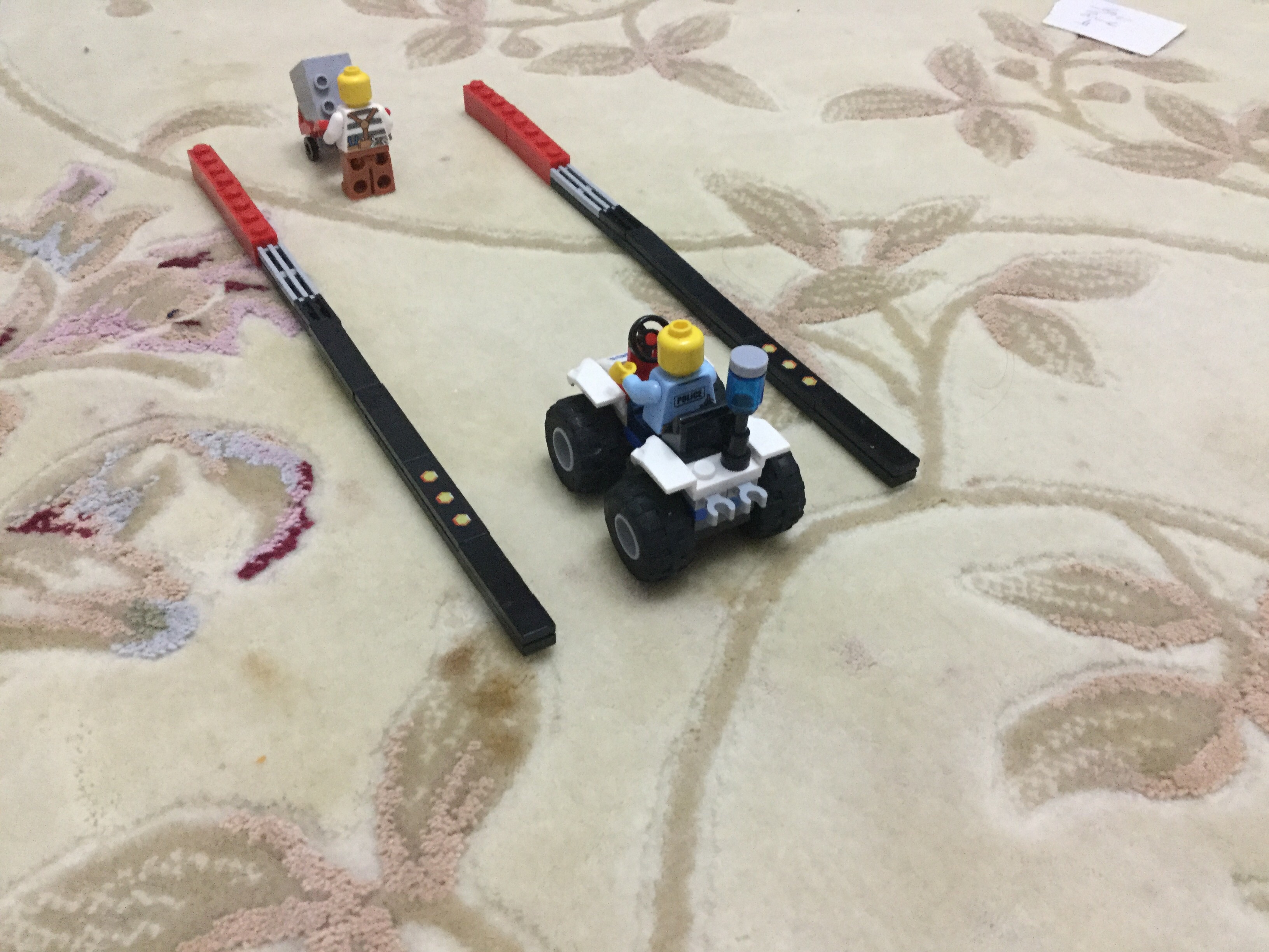 This is my #LEGO car. I like LEGOs. The thief is escaping from the police. But the police is chasing the thief. The police is driving the car very fast. The thief is very good at running. This is my police-thief LEGO set.