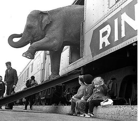 An elephant of the Ringling Brothers Circus descends trendy, New York Year 1963