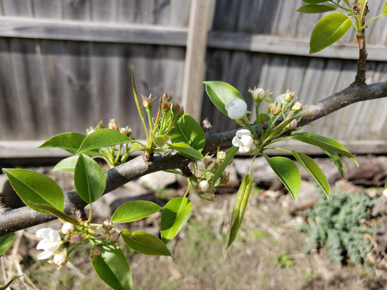Our pear trees are starting to blossom.