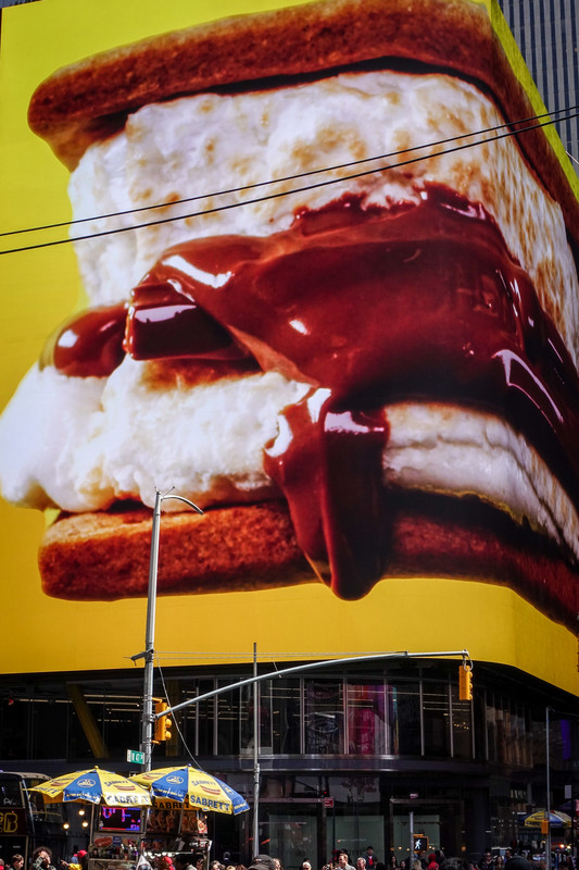 Giant wrap-around electronic billboard in Times Square.