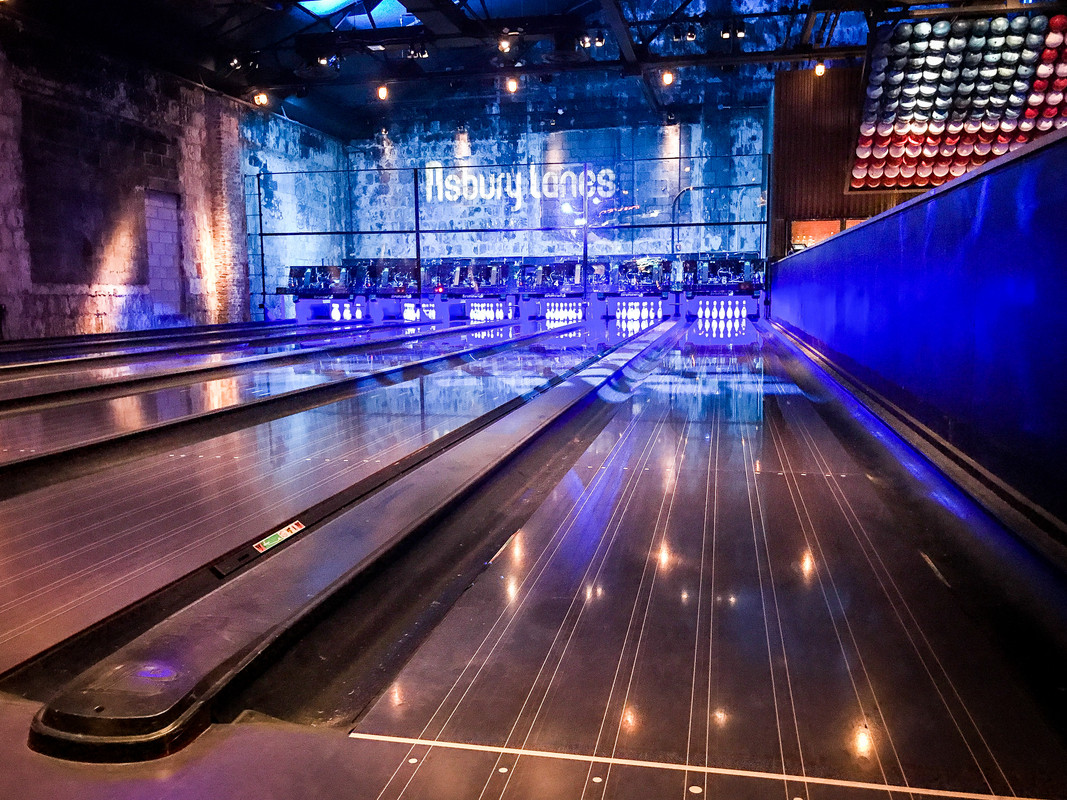 It has an attached Diner that serves local beer on tap and food that can be ordered at a window within the bowling alley. The venue's sound and lighting is also great!