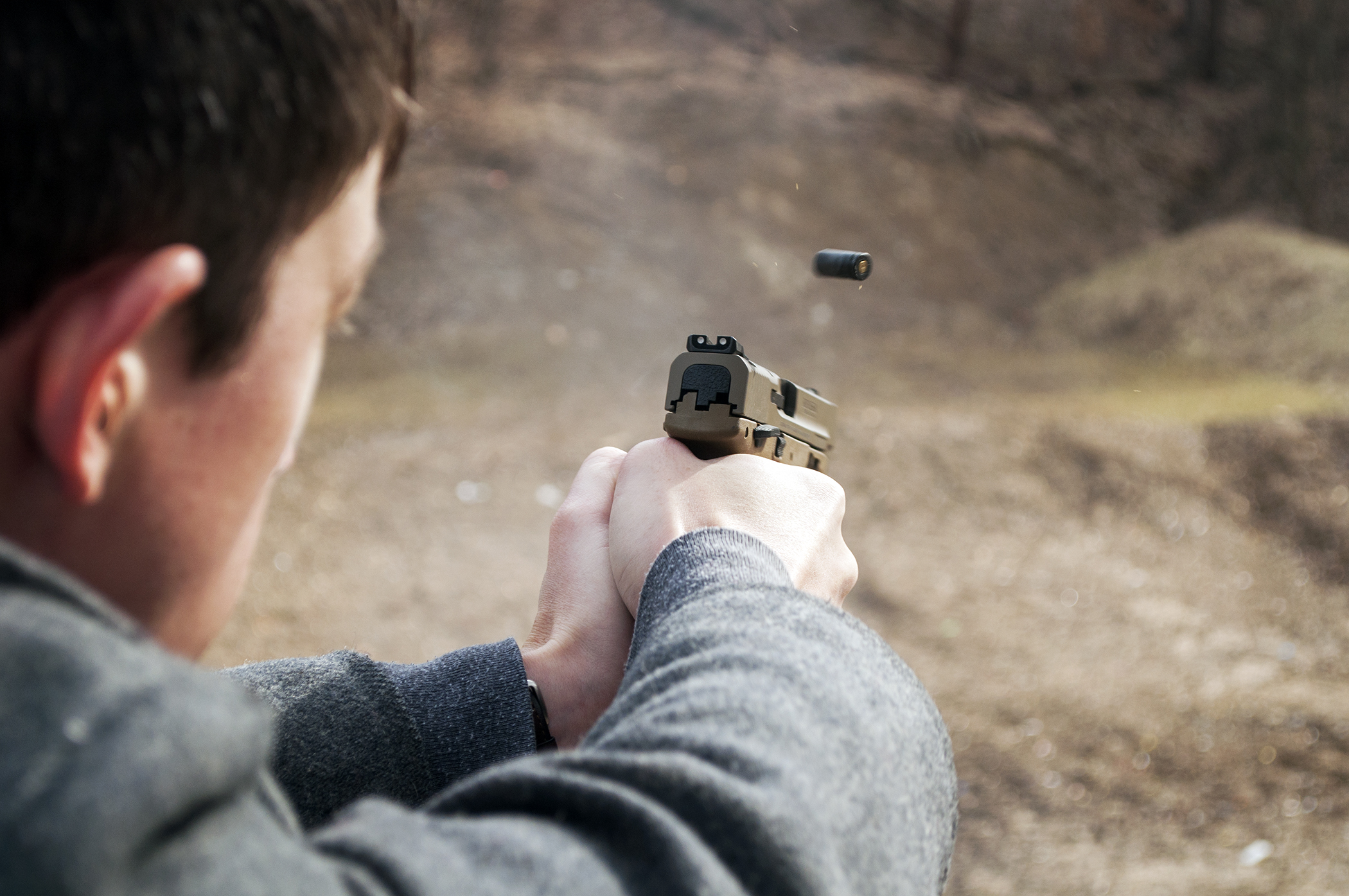 My brother and I managed to sneak off to the range the other day and get a little high velocity therapy in (it's like retail therapy but a lot louder!). I packed my camera along too so that I could do more than one kind of shooting while we were out. I was hoping to get some photos I could use for stock, particularly one with the slide still back and the freshly ejected shell hanging in midair. While I managed to get several with the spent brass floating above the gun my reflexes weren't quite quick enough to catch the slide still moving.