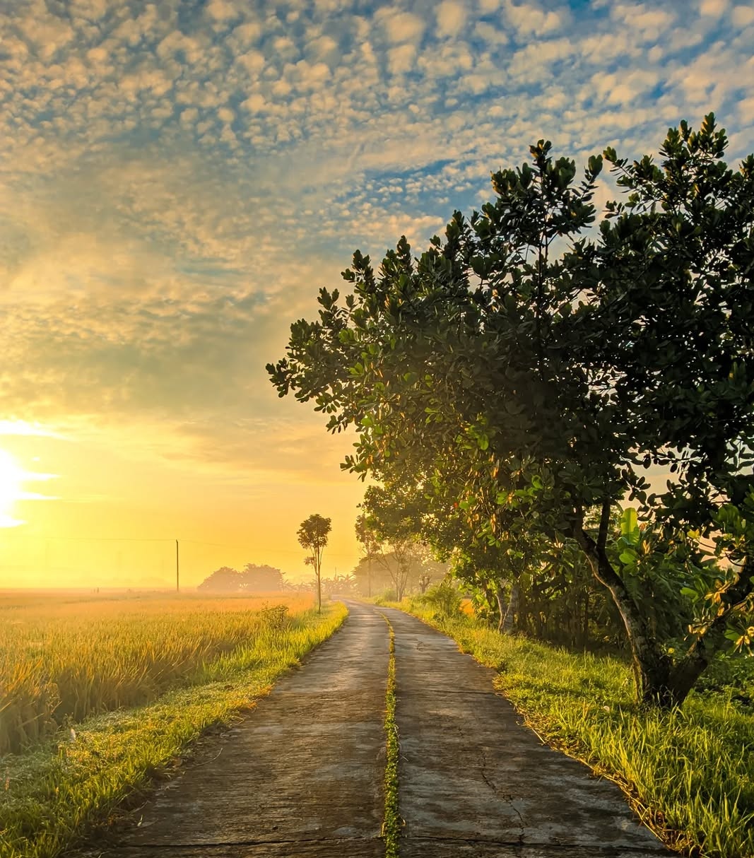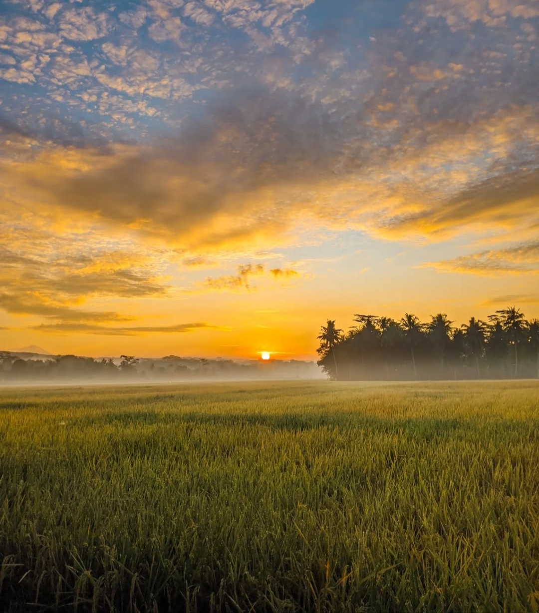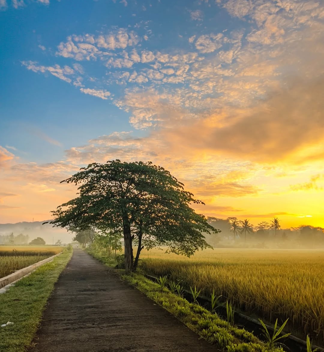 In the early moments before dawn, the world is still and hushed, wrapped in the coolness of night. As the horizon begins to glow with a soft, pale light, shades of blue, lavender, pink, and gold spill across the sky. These colors shift and deepen as the sun climbs higher, painting a canvas so fleeting that no two sunrises are ever the same. Sometimes, thin clouds scatter the sunlight, creating fiery streaks and brilliant bursts of orange and red. On clear mornings, the rising sun appears as a golden orb, calm and steady, gently illuminating the landscape.