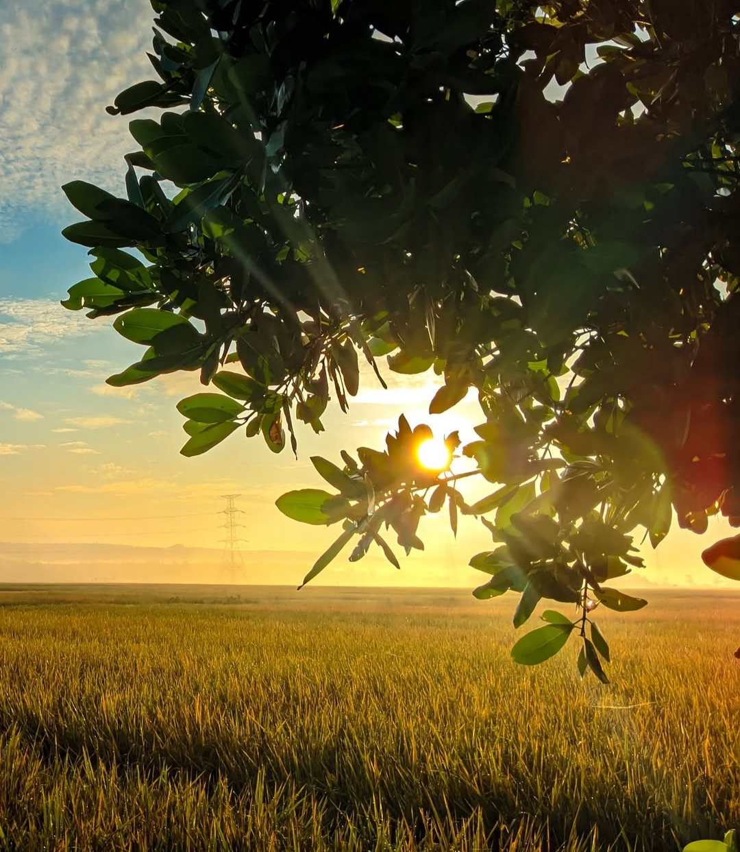 How beautiful is the sunset between the leaves of the tree, a very relaxing feeling