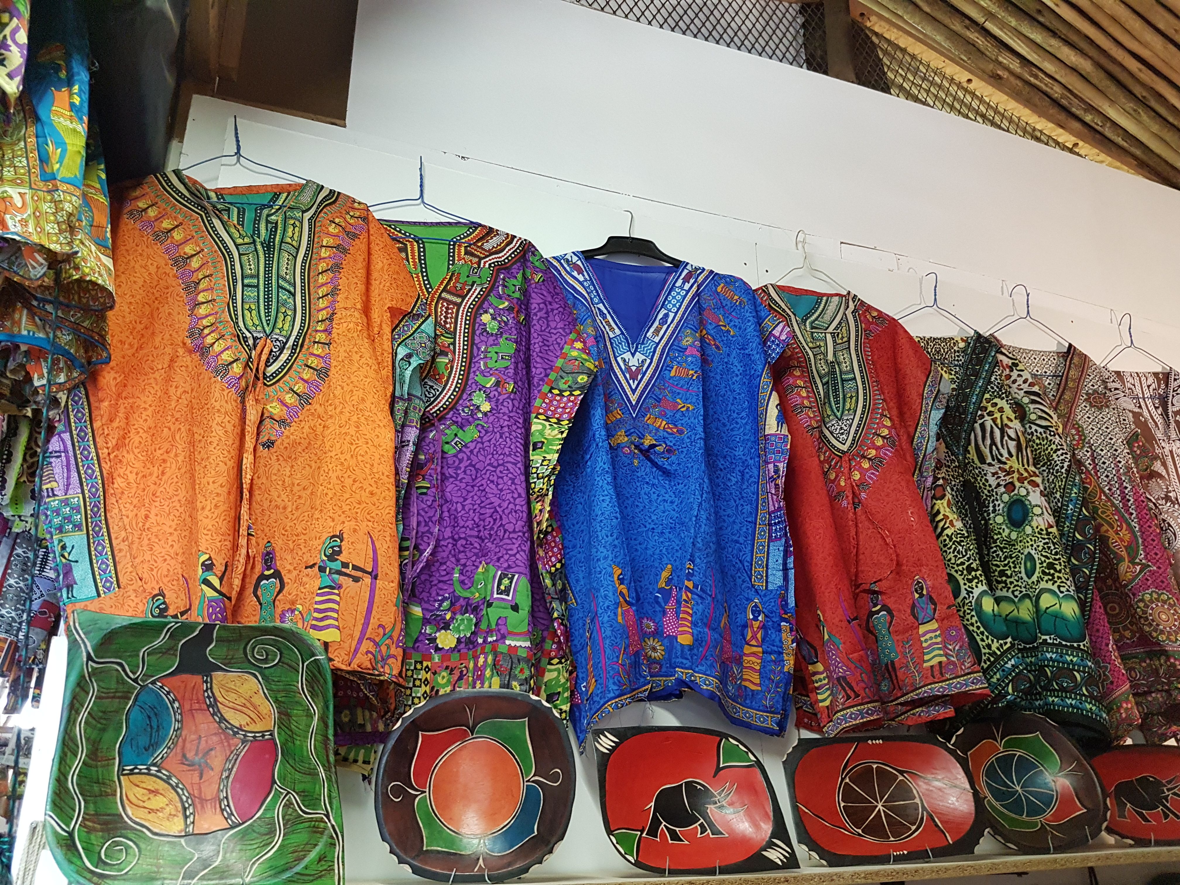 Last but not least, what will an African curio shop be without its bright colorful and patterned traditional shirts and hand painted bowls?