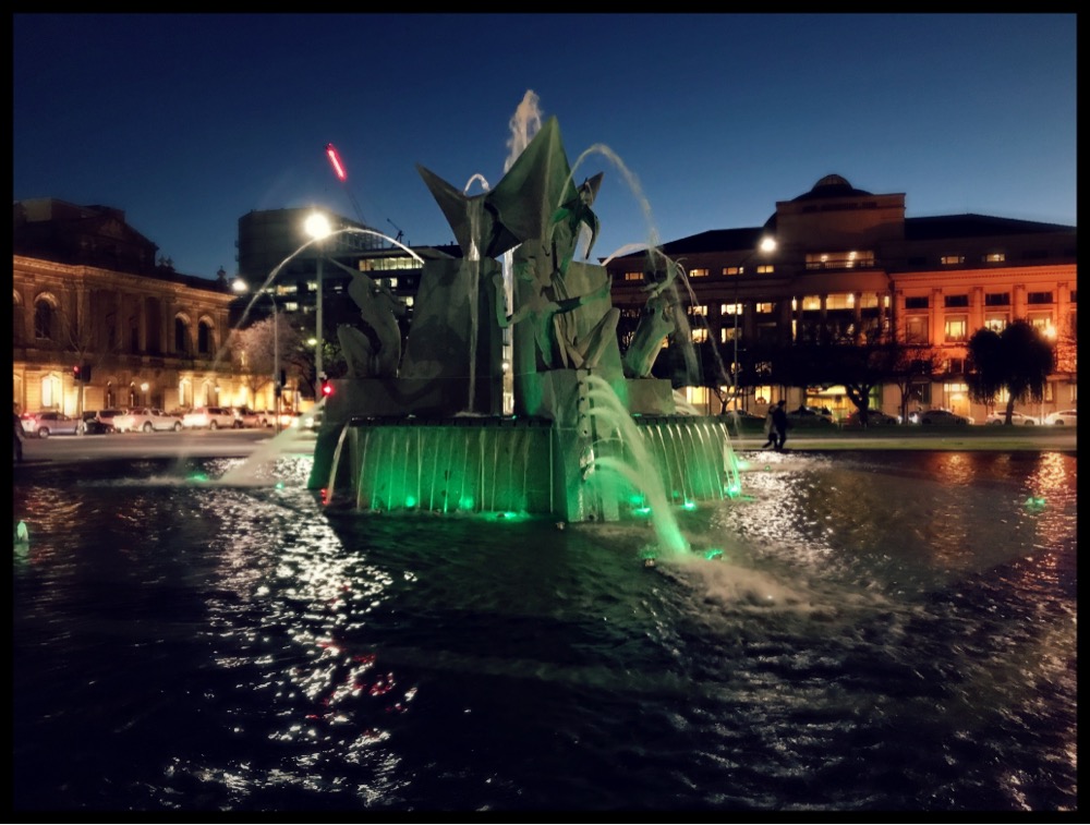 Was out and about this evening, and the fountain looks so good in the city lights.