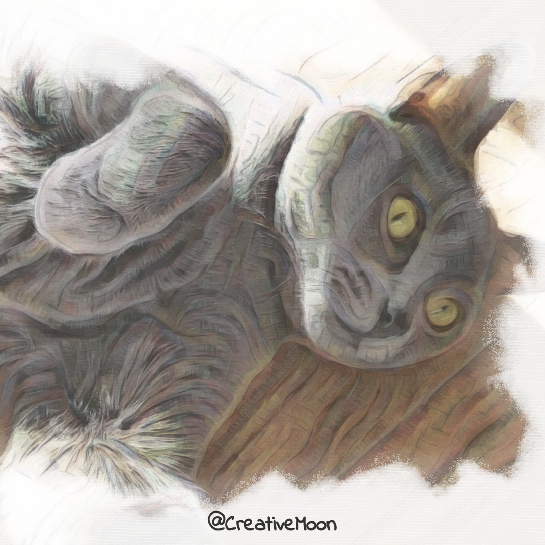 This post promotes a free full size screensaver that you can download at the link below and through the gallery on my ko-fi page. The artwork featured here illustrates my darling little girl Willow basking in the sunshine, she absolutely loves to be in front of the camera. It has been created using digital painting and photo manipulation techniques with a focus on keeping the true to source colors while also adding abstract texture. As the base reference and source material I have used either my own original photo or one that comes from free commercial use websites. -@creativemoon