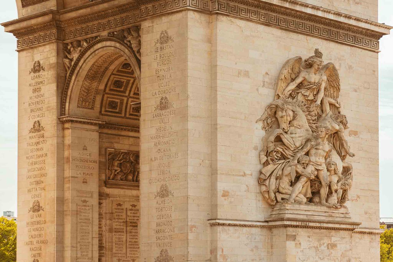 The construction of the 216-year-old monument started in 1806 when Napoleon I orders to build it to honor the victories of his huge army. The construction took about 30 years to finish (1836) when King Lodewijk Filips was sitting on the throne. All battles and generals from the Revolution and the First Empire are inscribed in this colossal monument. Now, we honor those who have fought and died for France. Later, under the Arc de Triomphe, lies the Tomb of the Unknown Soldier, from the First World War. Its flame is lit every night to honor and respect those who have fallen during the First World War. During this war, Charles Godefroy flew his plane under the arch's primary vault.