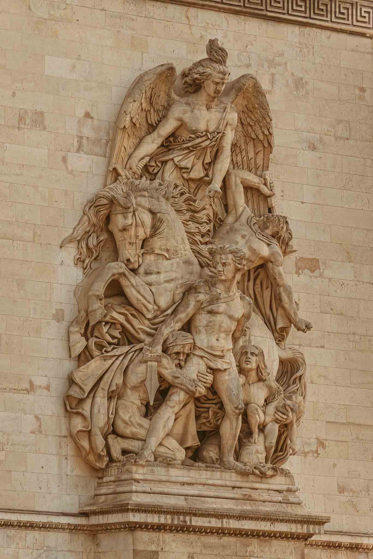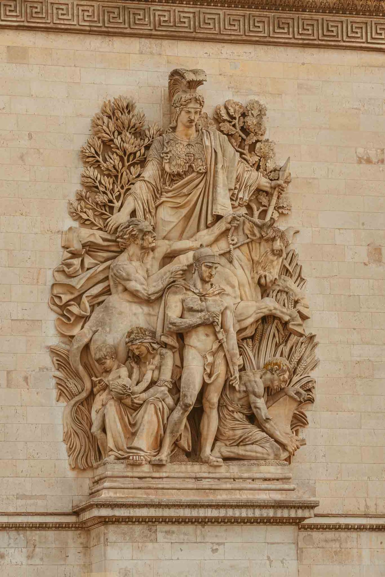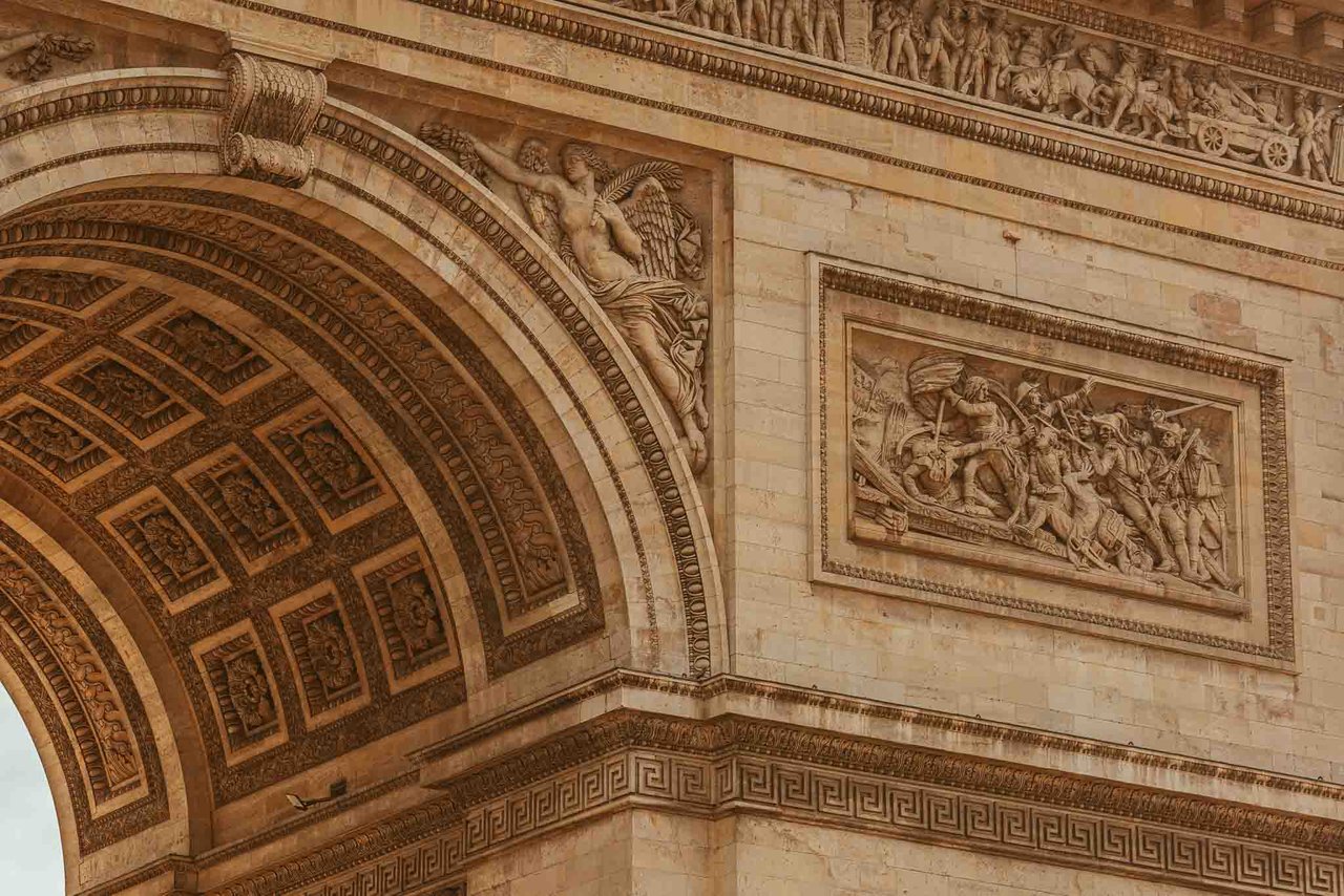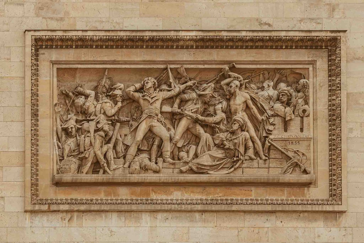 There are 6 sculpted reliefs on every side of the Arc de Triomphe, each of them telling and sharing important stories about the French Revolution and the Napoleonic era. Then there are four huge sculptures on each of the Arc's pillars. The most famous of them, The Departure of the Volunteers, also known as La Marseillaise (which I did not photograph this trip), was created by sculptor François Rude. The others were crafted by two other sculptors, Antoine Etex (which I both photographed down below) and Jean-Pierre Cortot.