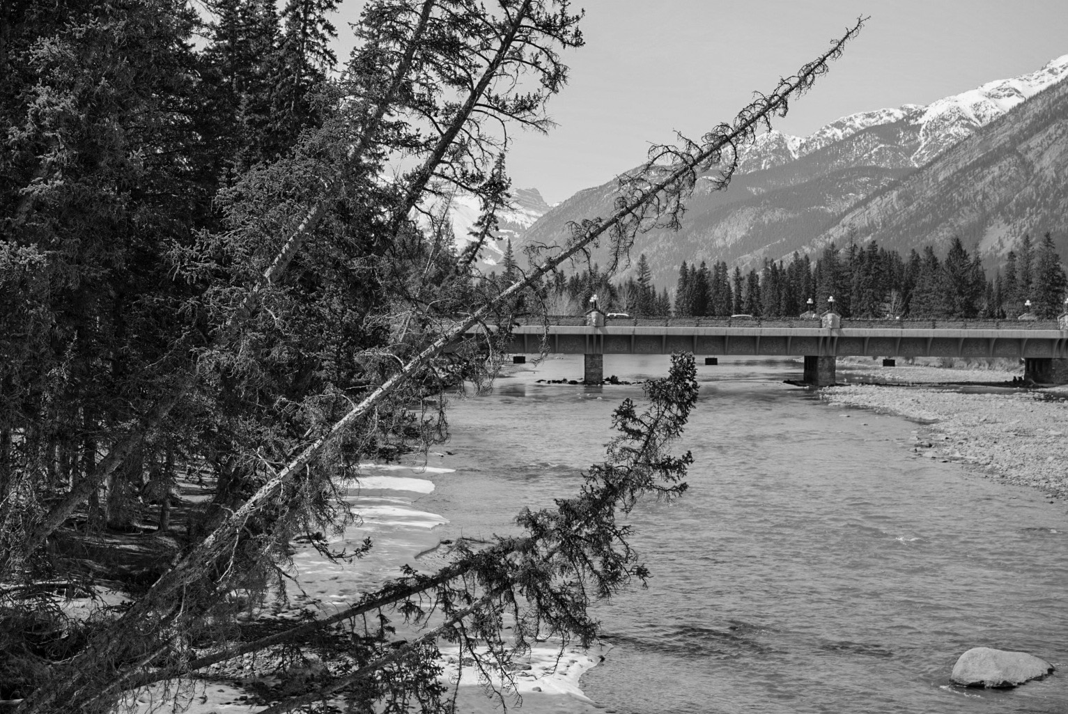 This is the Bow river that runs through the town of Banff, Alberta. The photo was taken in late April, and as you can see, there is still ice on the river. On this one, I can’t decide which photo I prefer.