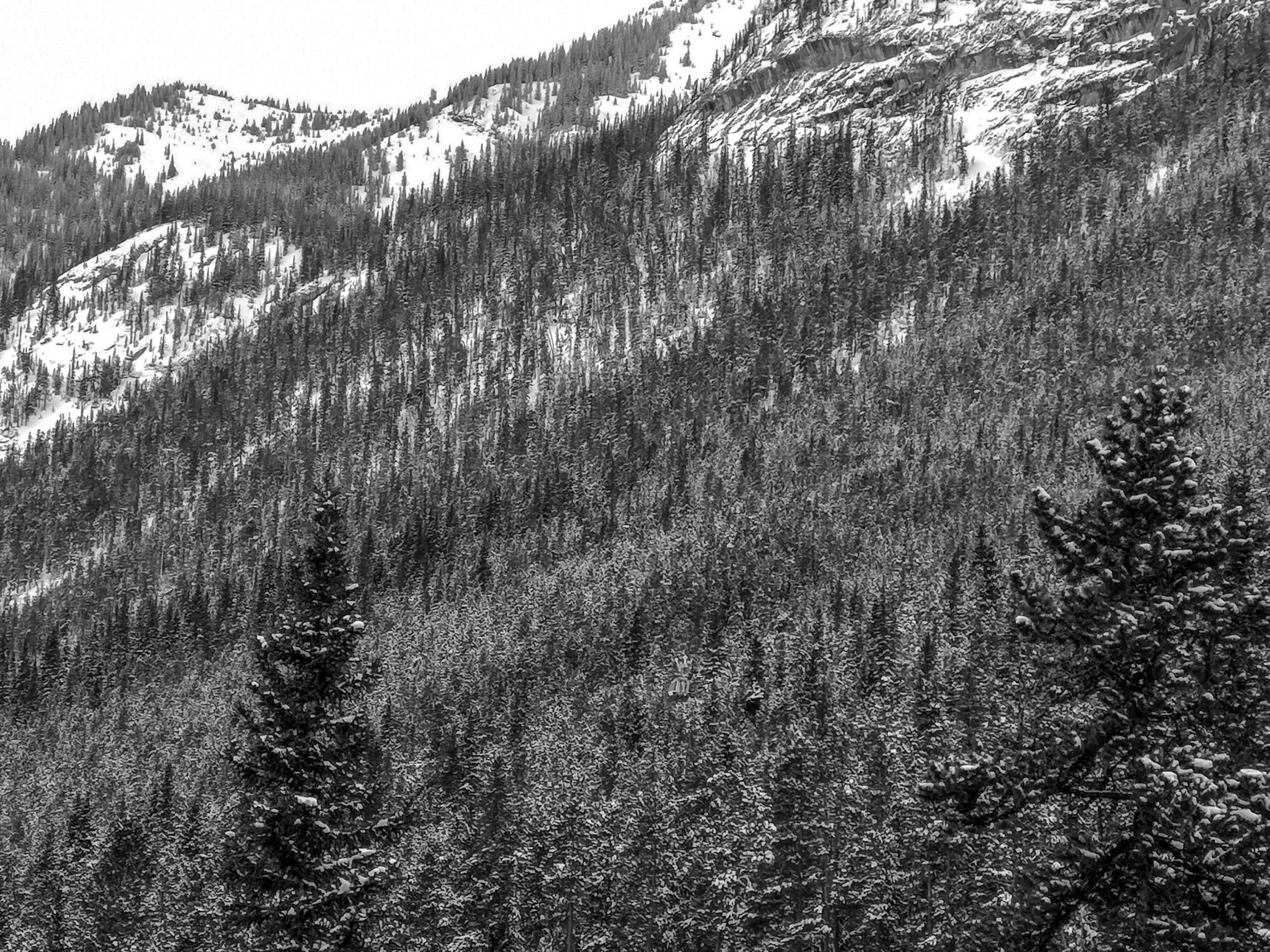 This is the view from the top of Mountain Avenue, town of Banff. Sulphur mountain gondola at the end of the road. Upper hot springs to the right, and the Rimrock resort hotel to the left. A Huawei P20 Pro Smartphone was used.