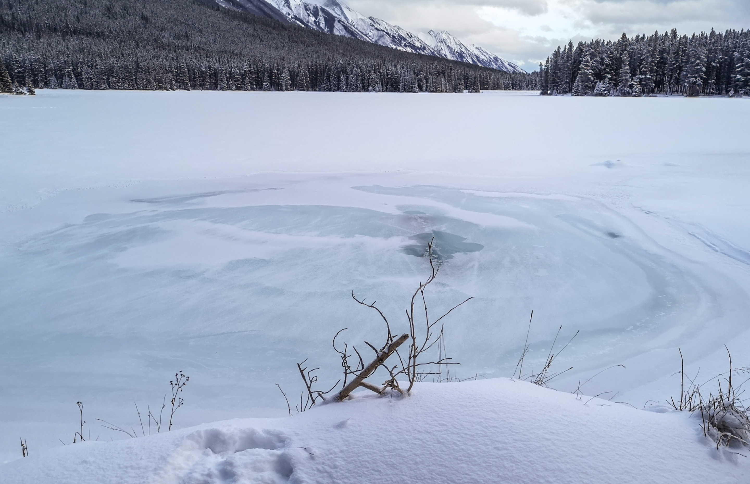 Around the Canadian Rockies in Colour and Black & White ~ CautionsteemCreated with Sketch.daveks (77)in #photography • 6 years ago Caution: Don’t walk on the ice early in the season. Seems like a no brainer doesn’t it? But every year people seem to fall through the snow/ice like clockwork. Don’t become a statistic. This photo was taken at Two Jack Lake, Banff Park, Alberta. ISO 50 ~ f/1.8 ~ 1/750 sec Huawei P20 Pro #art #photofeed #palnet