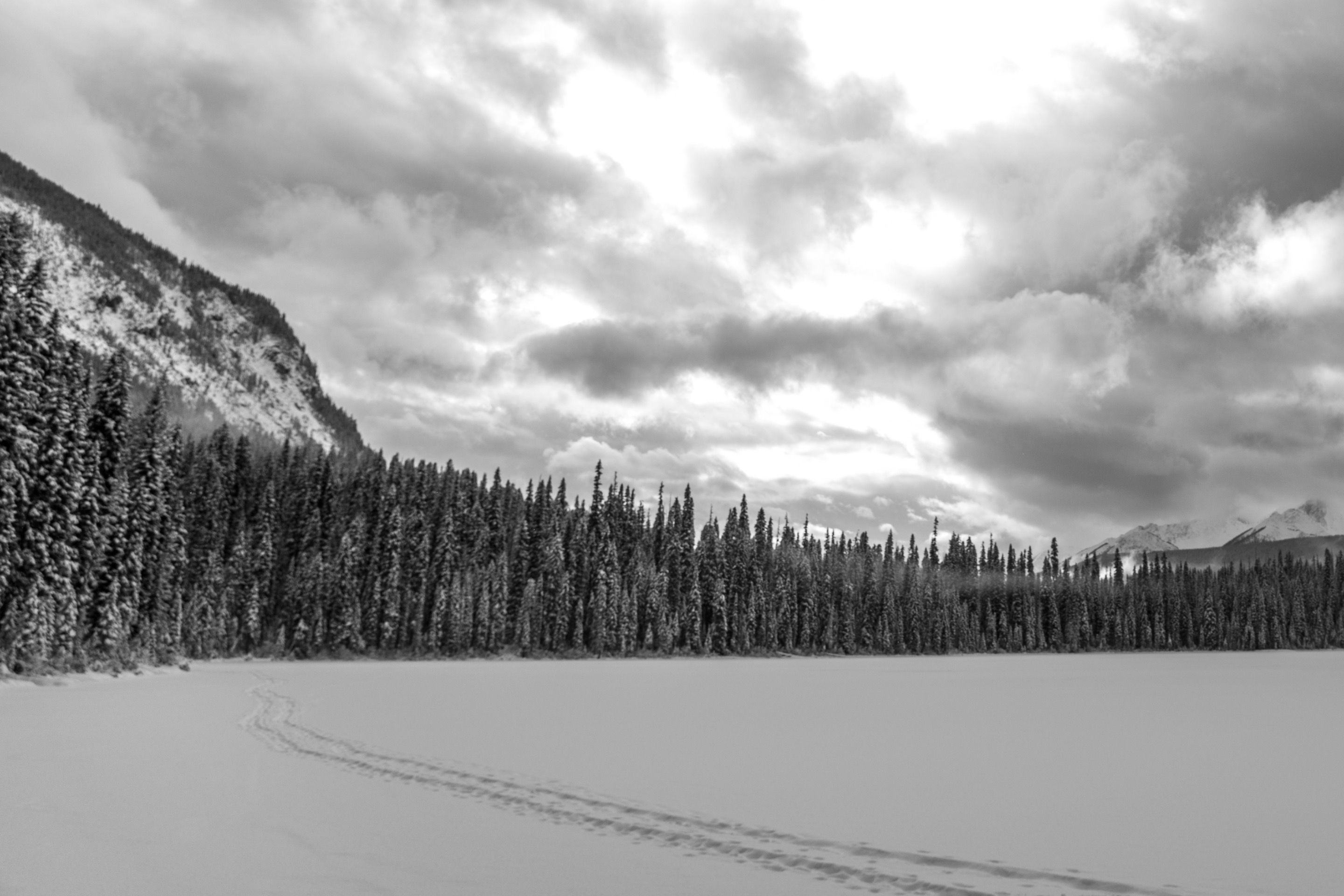 Making tracks at Emerald Lake, Yoho National Park, British Columbia. Since someone made these, the ice had actually thinned somewhat in certain areas. Proceed at your own risk!