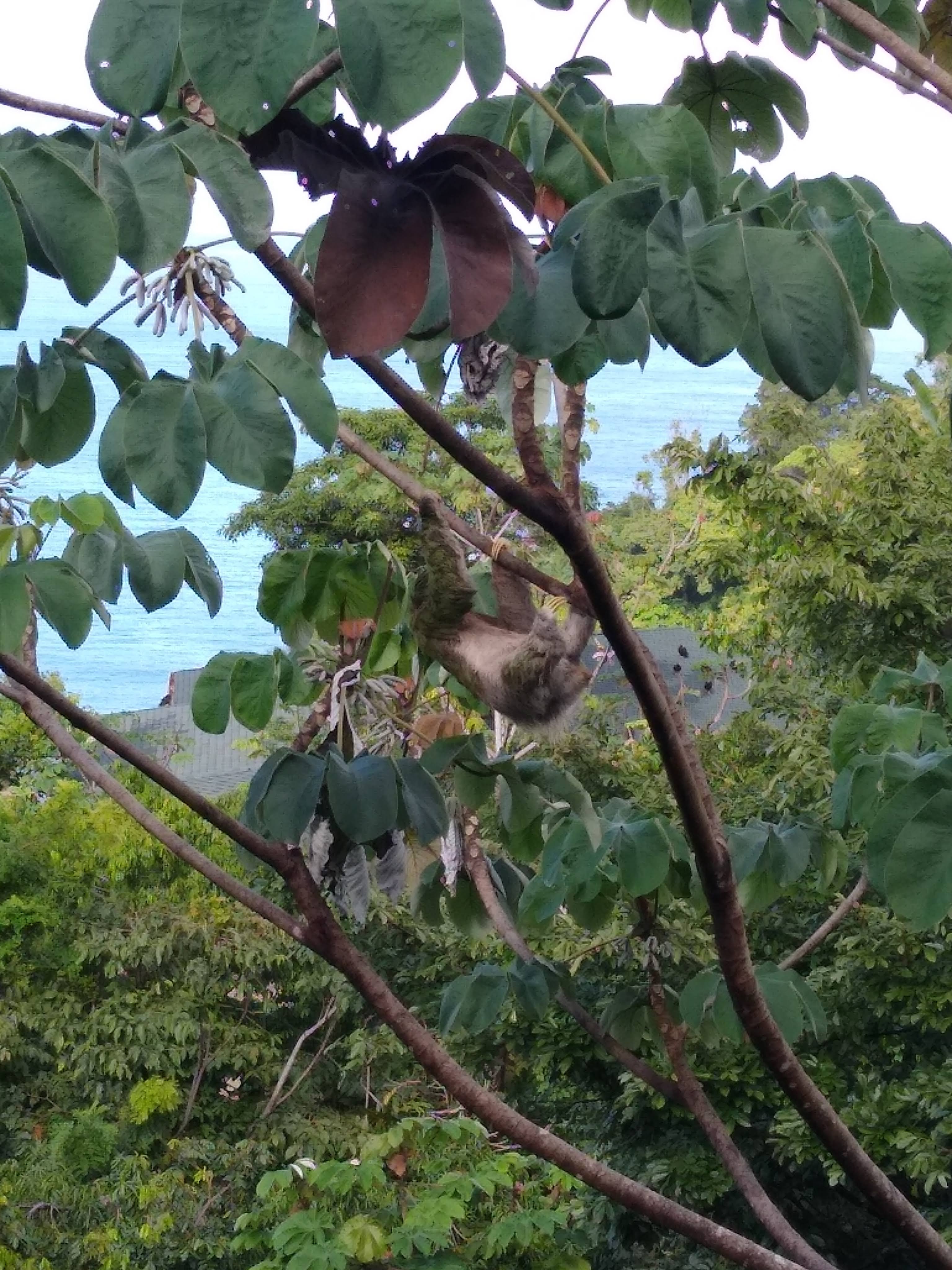 This last October I had a wonderful vacation in Costa Rica during their rainy season. Previously I had only visited the country during their dry season. I was delighted to see the beautiful flora in full bloom and even got some close-up views of a three-toed sloth covered with green algae, drying itself off in a Cecropia tree.